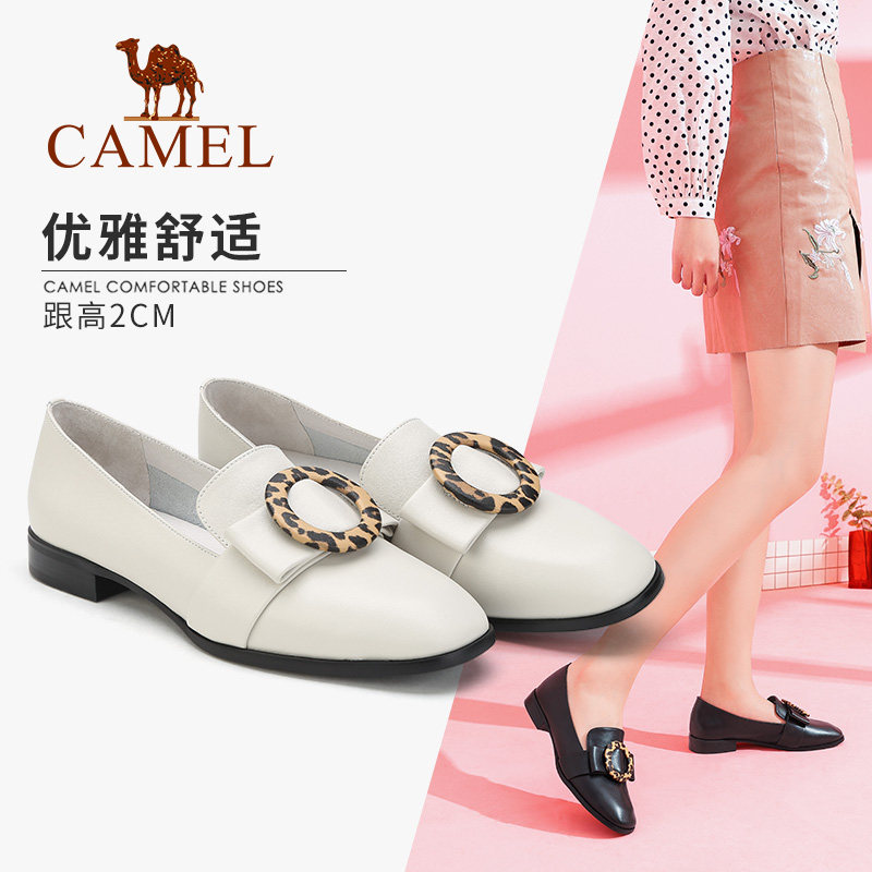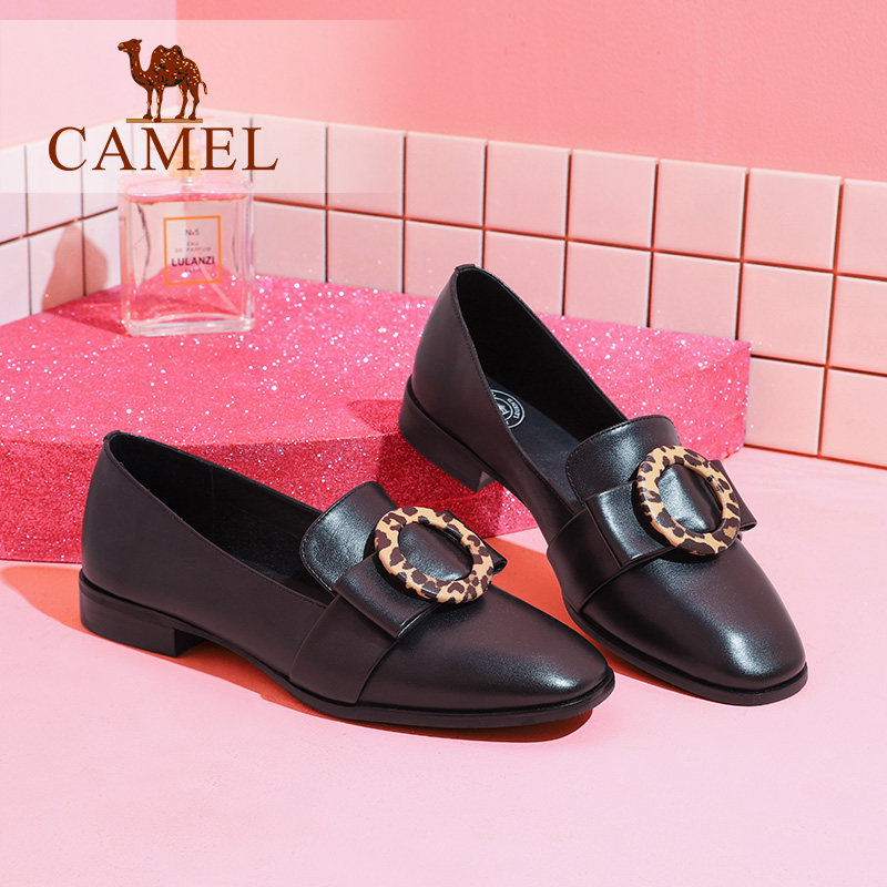 Женские туфли верблюда весны и лето в глубоких ртах ретро -одиночные туфли женская квадратная голова и леопардовый узор с пряжкой дикие девочки обувь