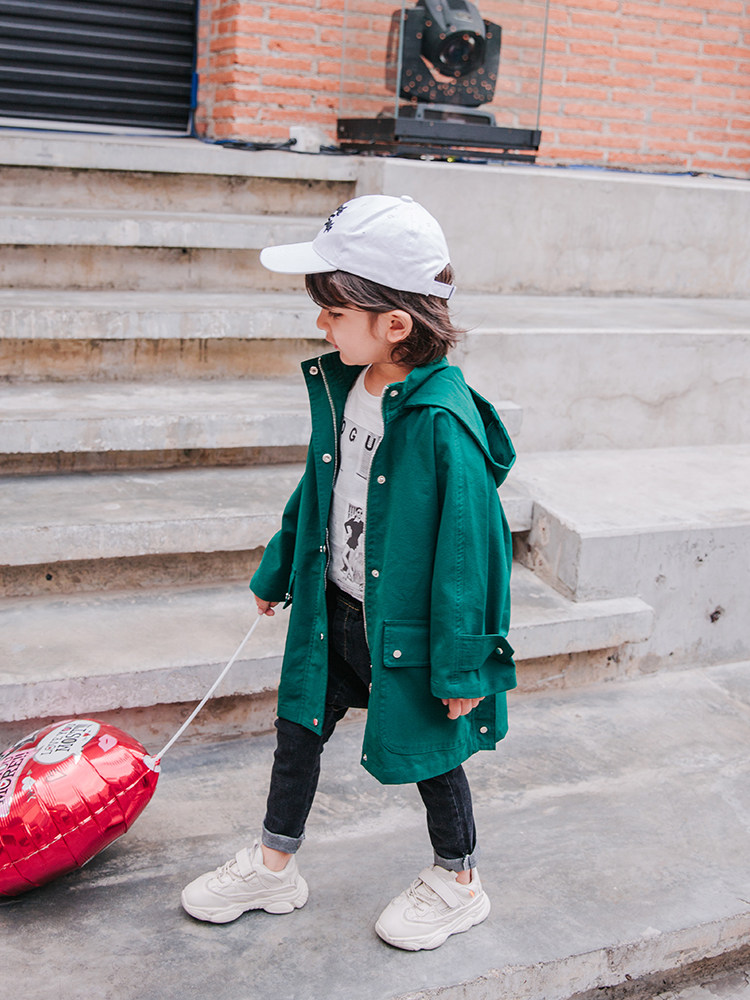 Плащ для мальчиков, осенняя детская длинная куртка, 2023, в корейском стиле, в западном стиле, средней длины, детская одежда