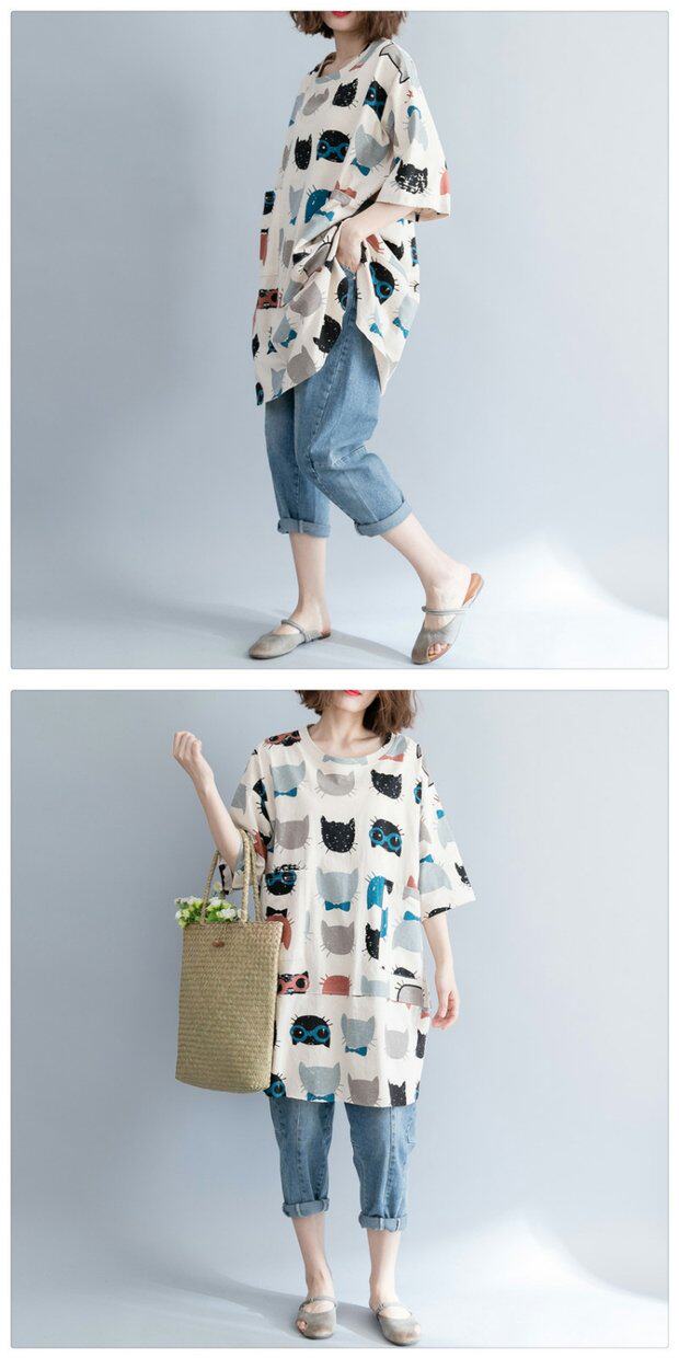 Летняя одежда, длинная футболка, оверсайз, большой размер, короткий рукав, с рукавом, по фигуре, средней длины