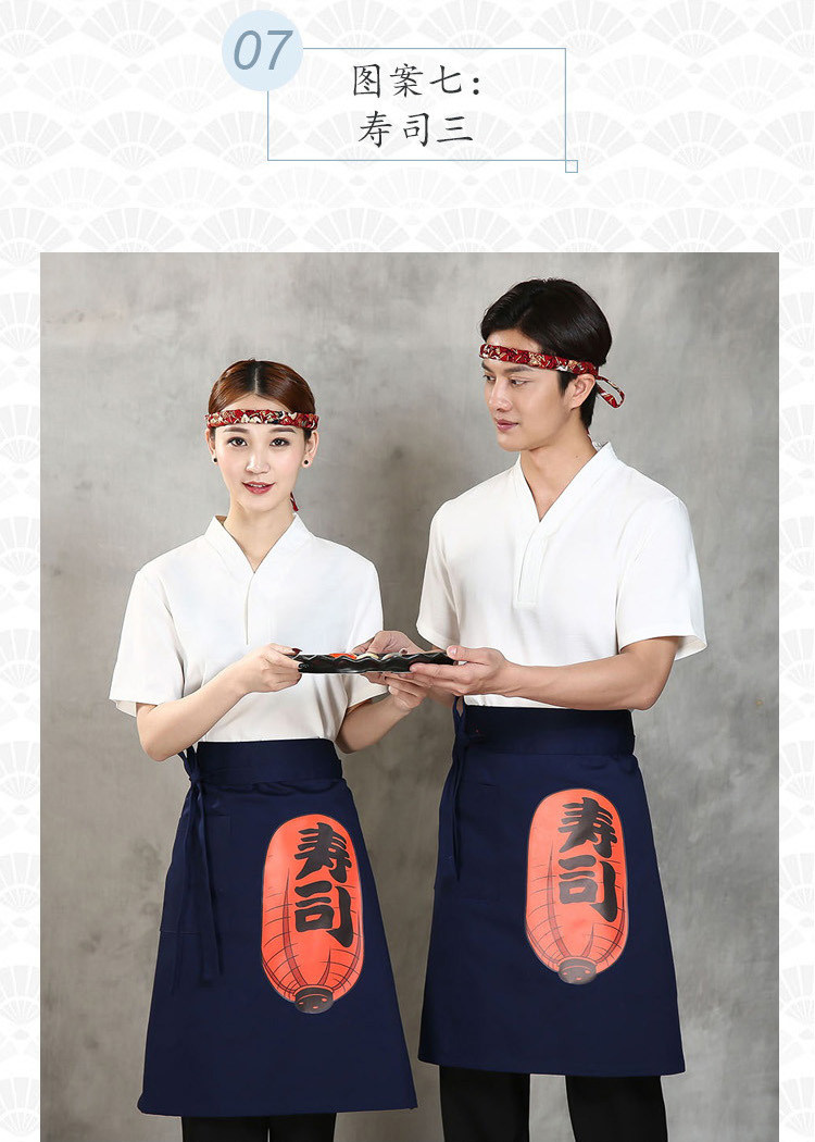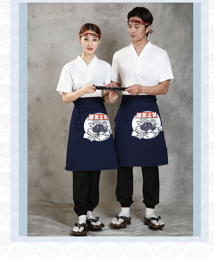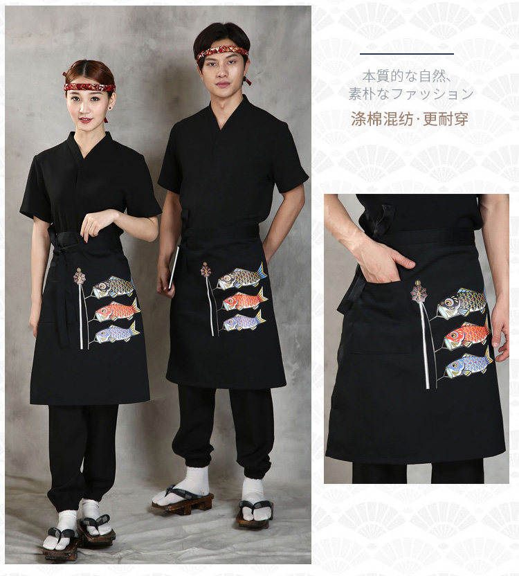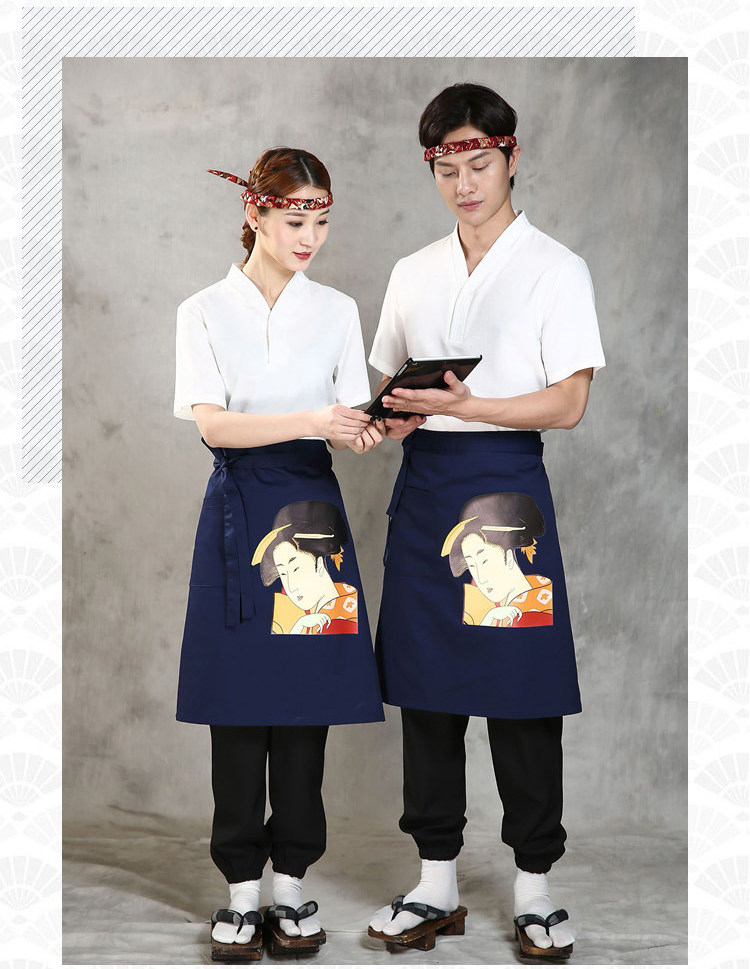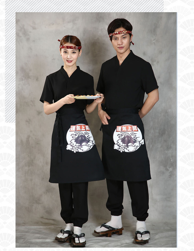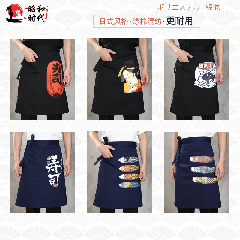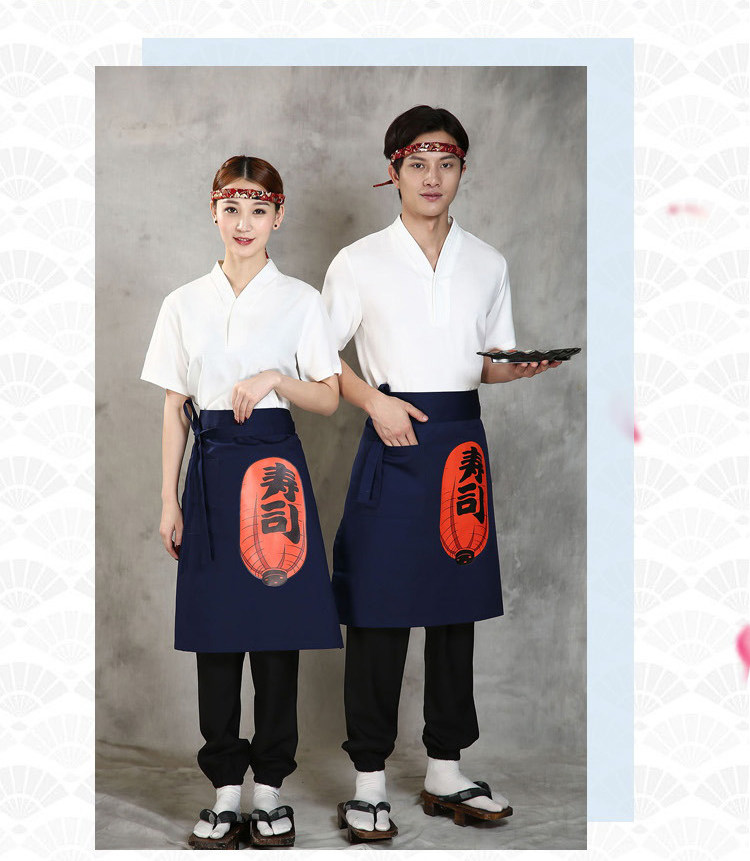 Японский стиль кулинарного магазина суши -ресторан шеф -повара официант и ветровый отпечаток дикий черный тибетский зеленый фартук