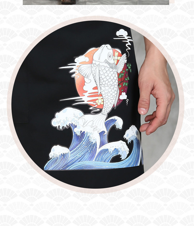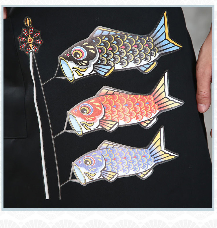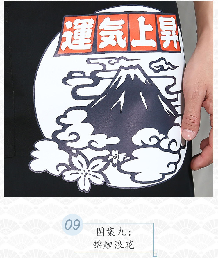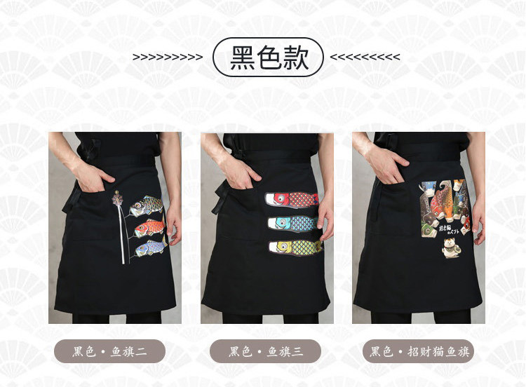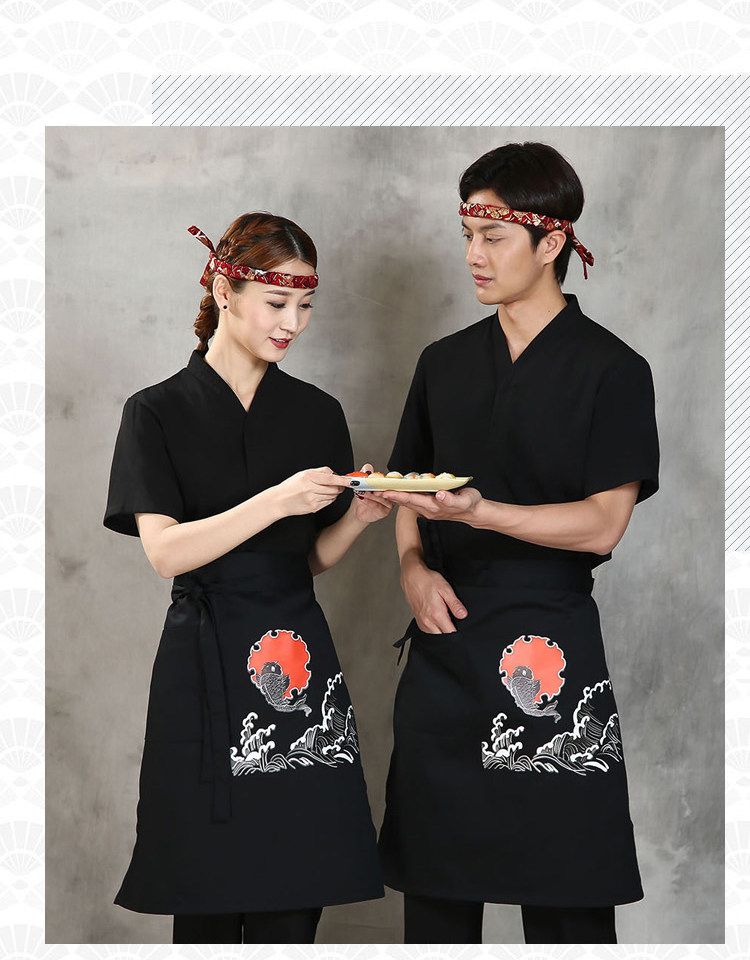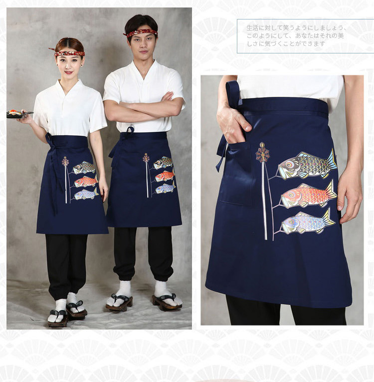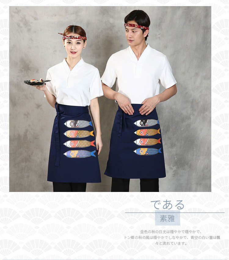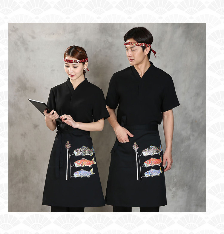 Японский стиль кулинарного магазина суши -ресторан шеф -повара официант и ветровый отпечаток дикий черный тибетский зеленый фартук