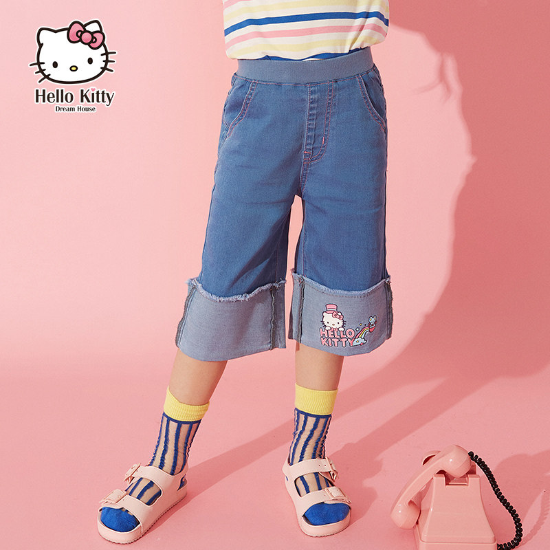 Hello Kitty, летняя детская летняя одежда, штаны для отдыха, джинсы, детская одежда, 2020