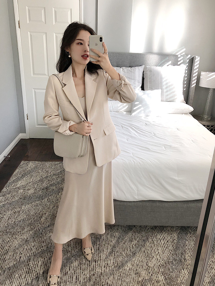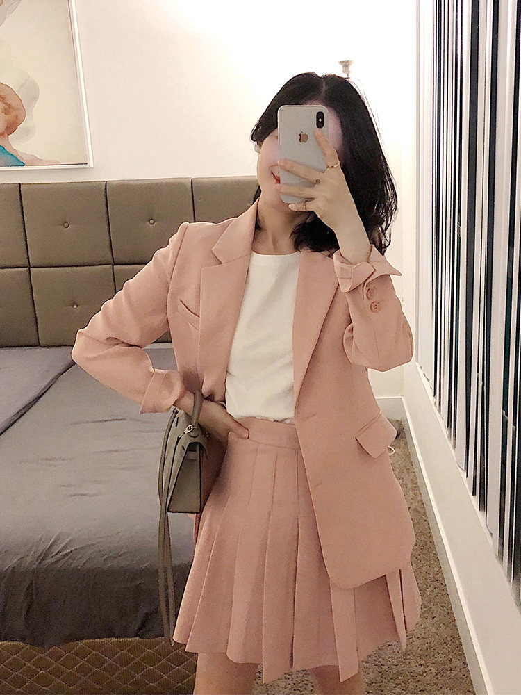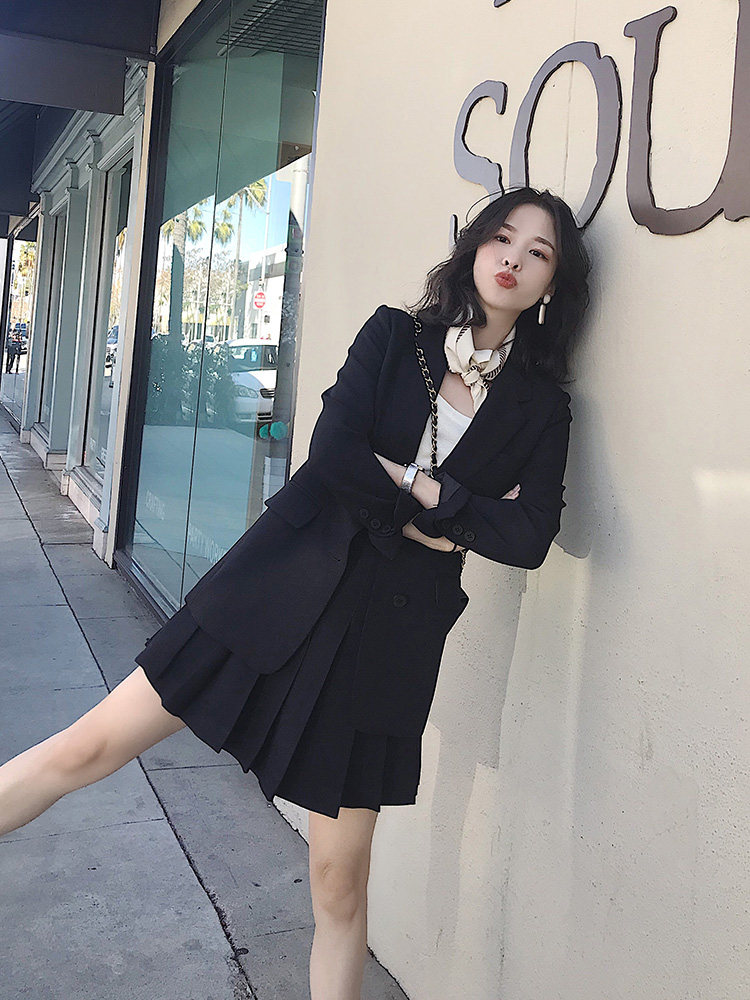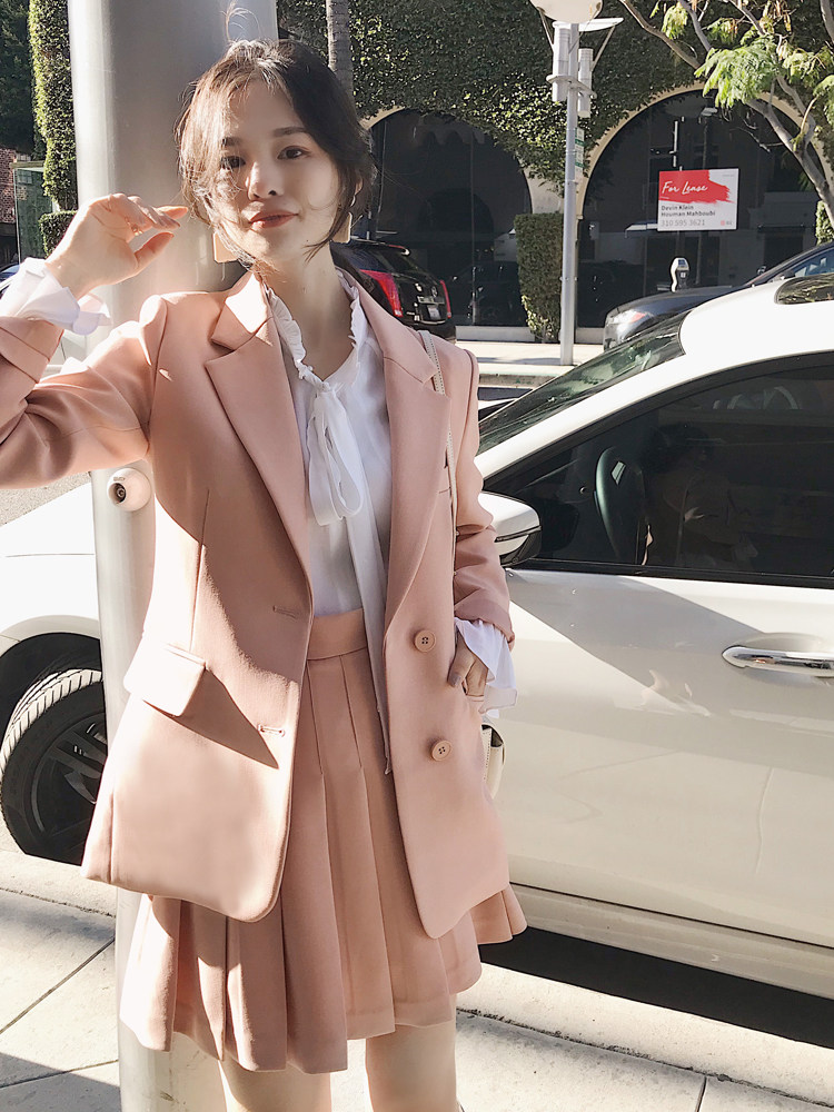 Весенний пиджак классического кроя, комплект, 2019, популярно в интернете, 3 предмета