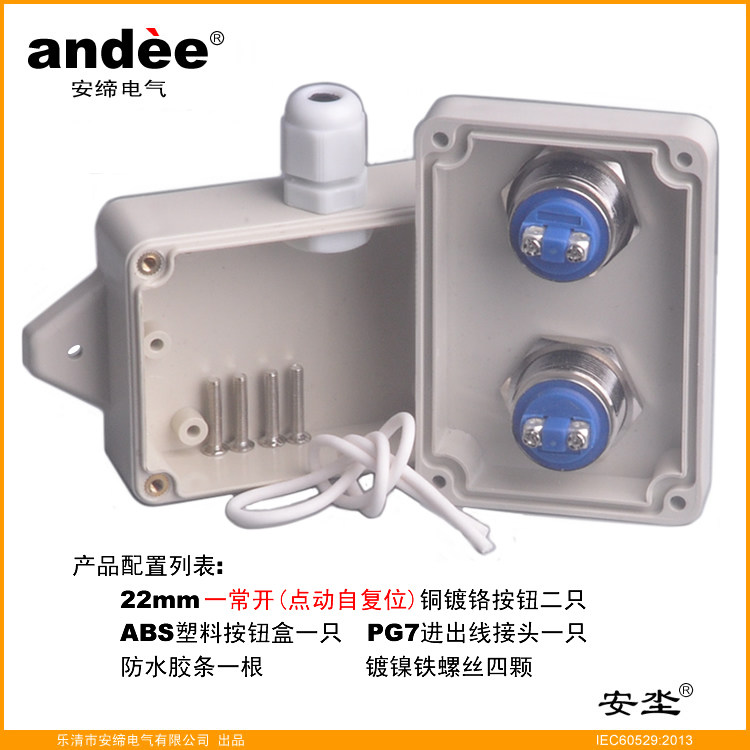 Металлическая водонепроницаемая двойная маленькая кнопка, портативный переключатель, 22mm, фиксаторы в комплекте, распределительная коробка