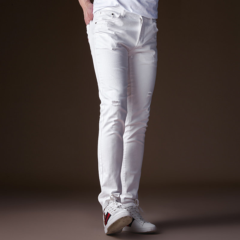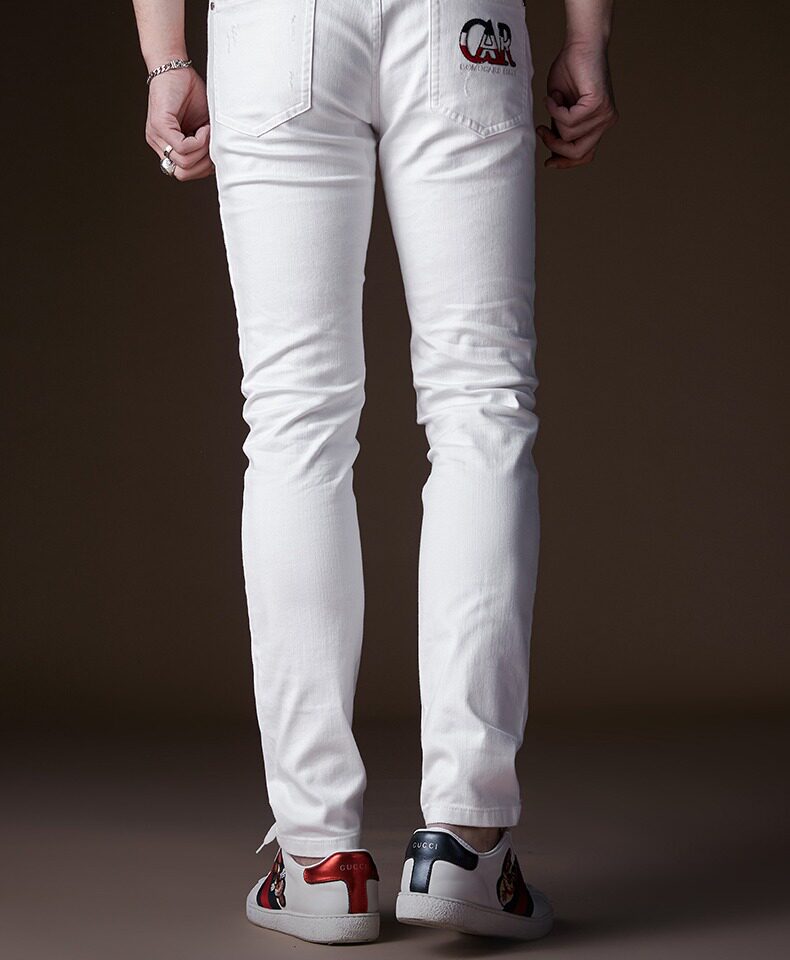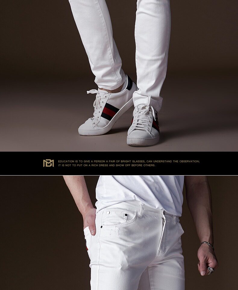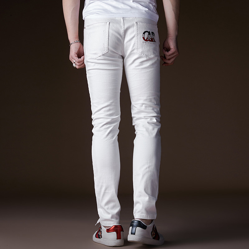 Мужские белые ретро трендовые джинсы, с вышивкой, в корейском стиле, свободный прямой крой