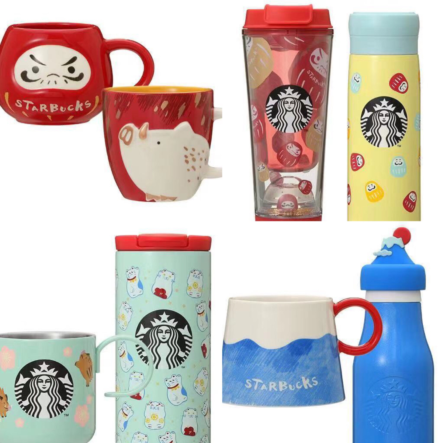 Япония Starbucks Starbucks2019 Новый год свиньи Nian Dharma Capital Cat Fox Fuji Mark Cup Cup Accompaning Cup