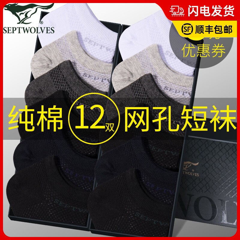 Septwolves, мужские хлопковые дышащие летние тонкие низкие носки с низким вырезом, впитывают пот и запах