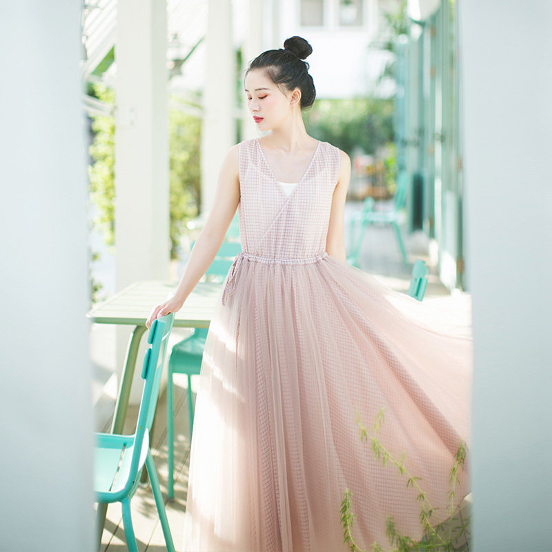 Платье без рукавов, базовая длинная юбка, (в наличии на складе), из хлопка и льна, 2021 года