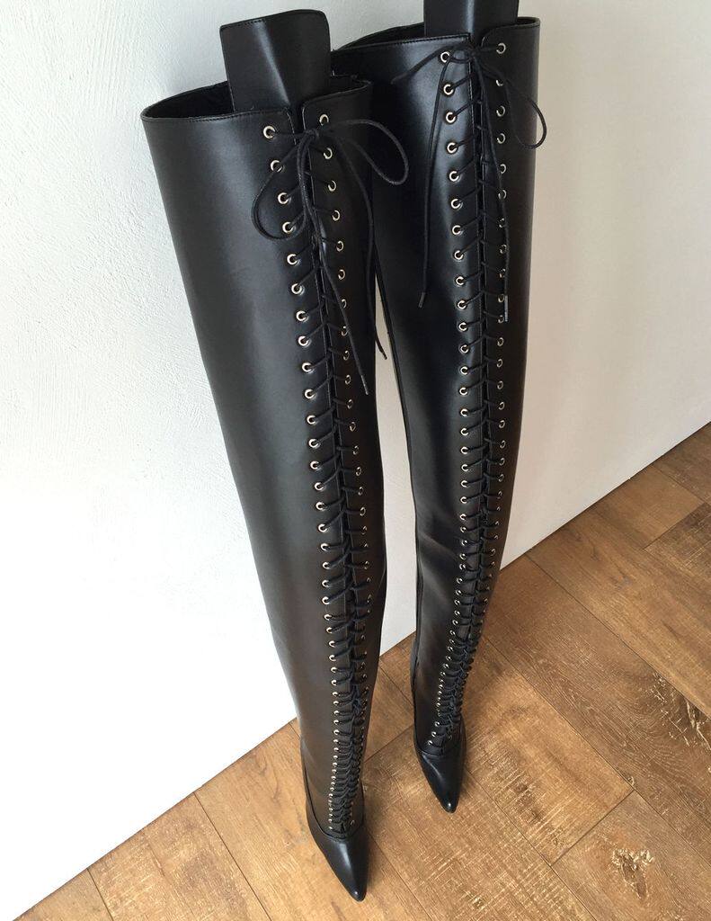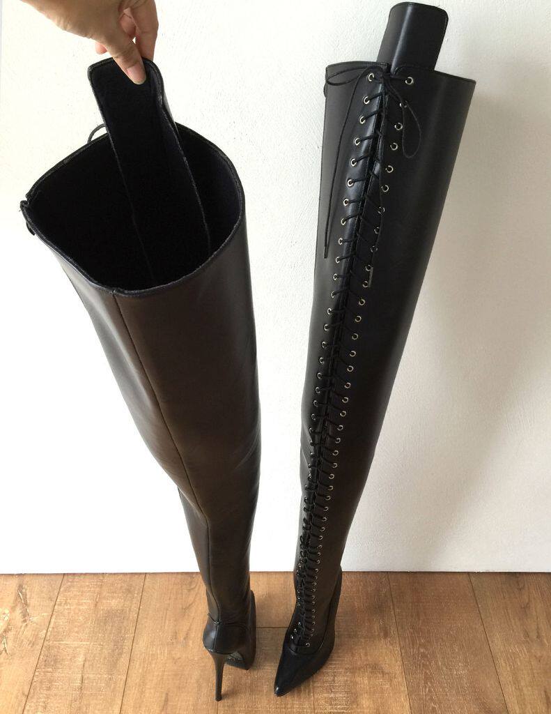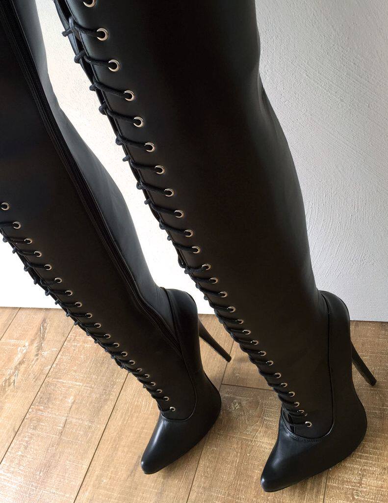 Черный матовый эластичный полиуретановый сексуальный ремень, высокие сапоги