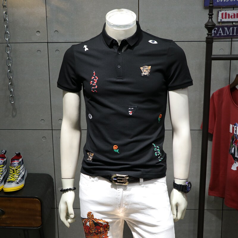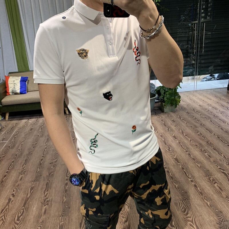 Летняя тонкая футболка polo в английском стиле, короткий рукав, с вышивкой, в британском стиле