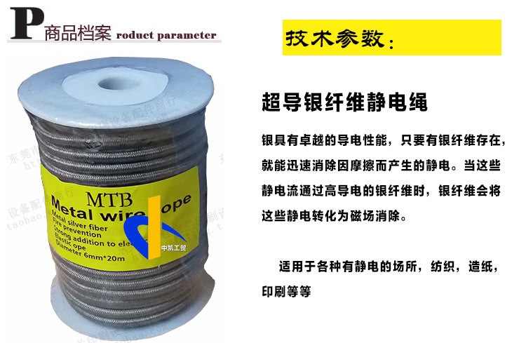 Статическая веревка из серебряного волокна, веревка для устранения статического заряда, композитная машина, машина для глубокой печати, немецкая проводящая веревка MTB, металлическая веревка