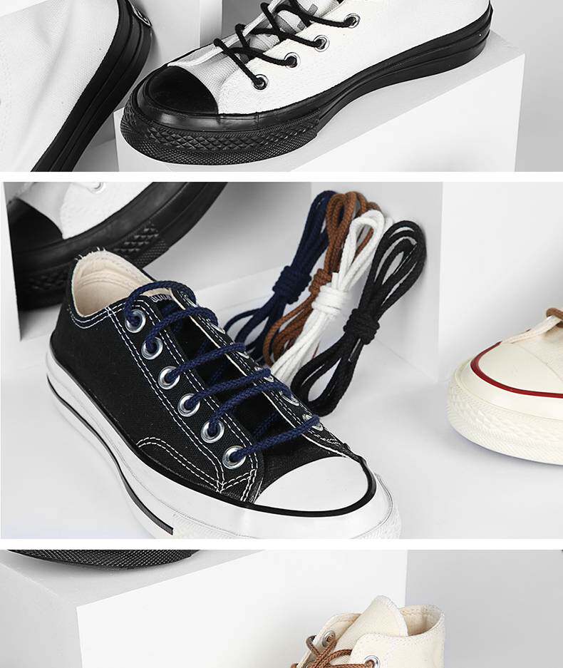 Классические конверсы, тканевые низкие черные шнурки, 3mm