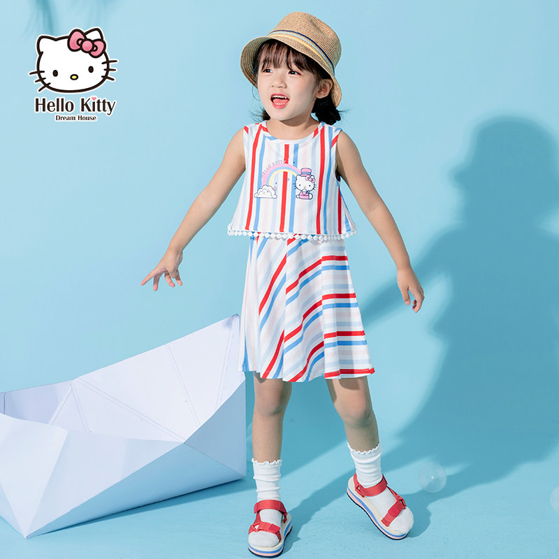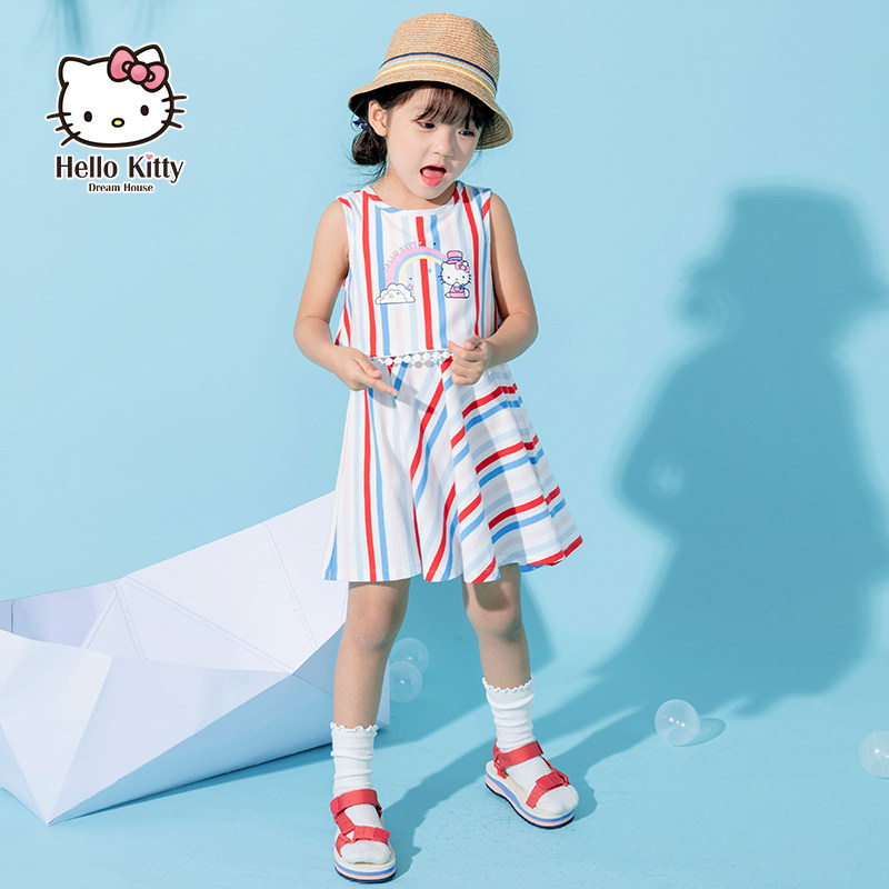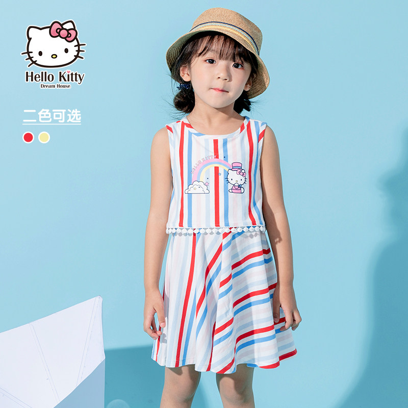 Hello Kitty, летняя детская летняя одежда, наряд маленькой принцессы для отдыха, платье, детская одежда, коллекция 2021, в западном стиле, в корейском стиле