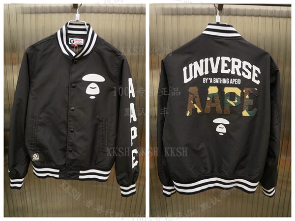 KKSH Покупка AAPE 19 весенняя мужская задняя буква полосатая кампания камуфляж бейсбол. Бейсбольная куртка 7282