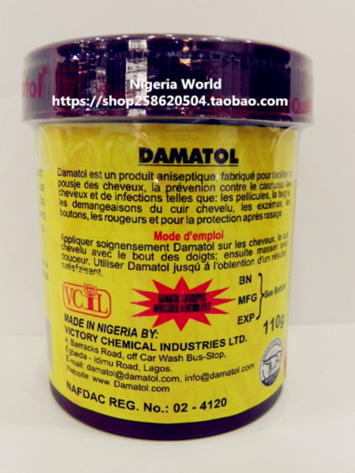 Нигерия Мир Damatol Крем для лечения кожи головы и волос, 110 г
