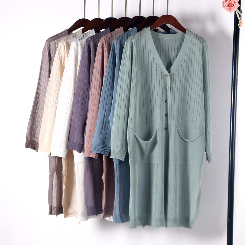 Летний тонкий цветной длинный кардиган, рубашка, трикотажный свитер, накидка