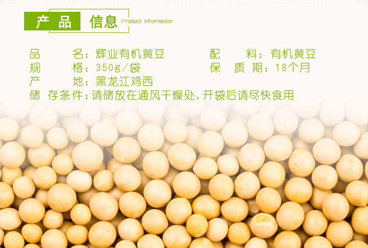Соевые бобы Huiye органические 350г/пакет