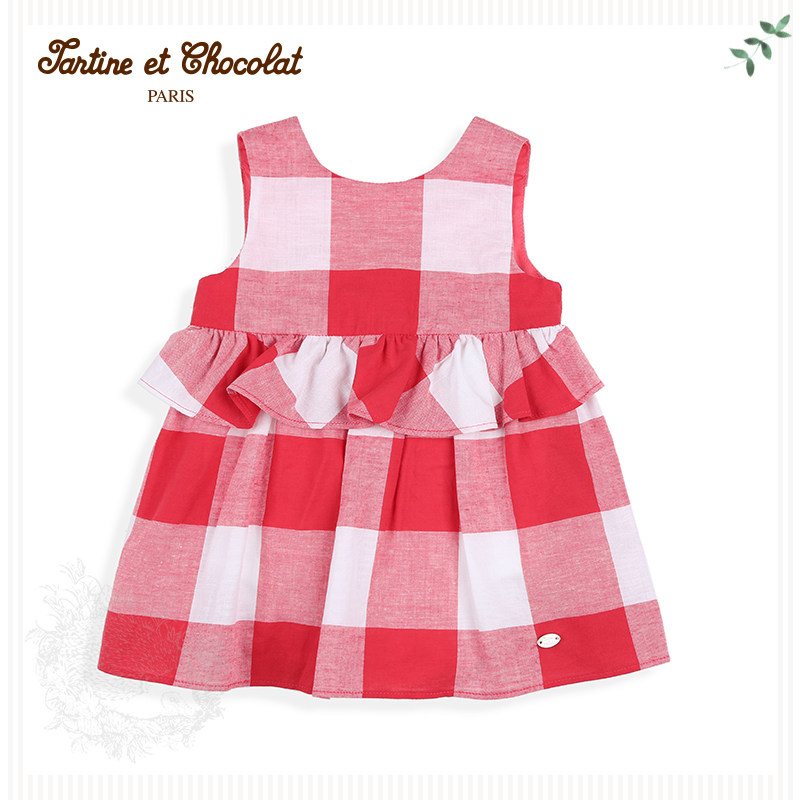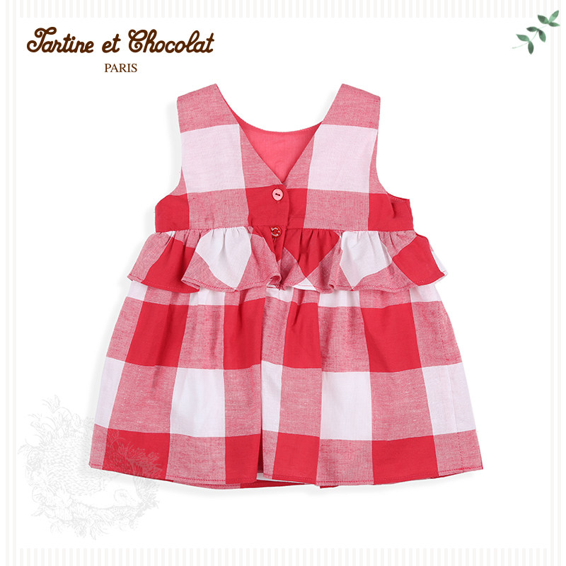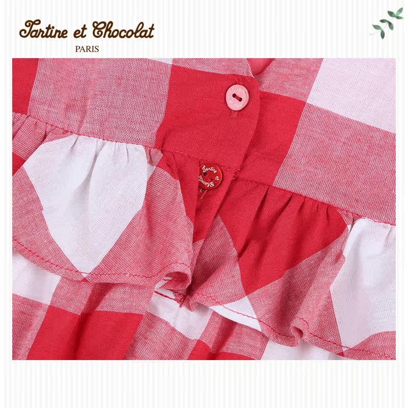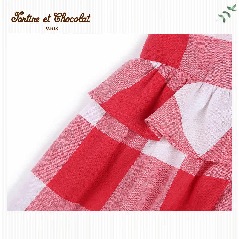 TartineToChocolat Французская шоколадная детская одежда Летняя девочка милая клетчатая рукавочная костюма