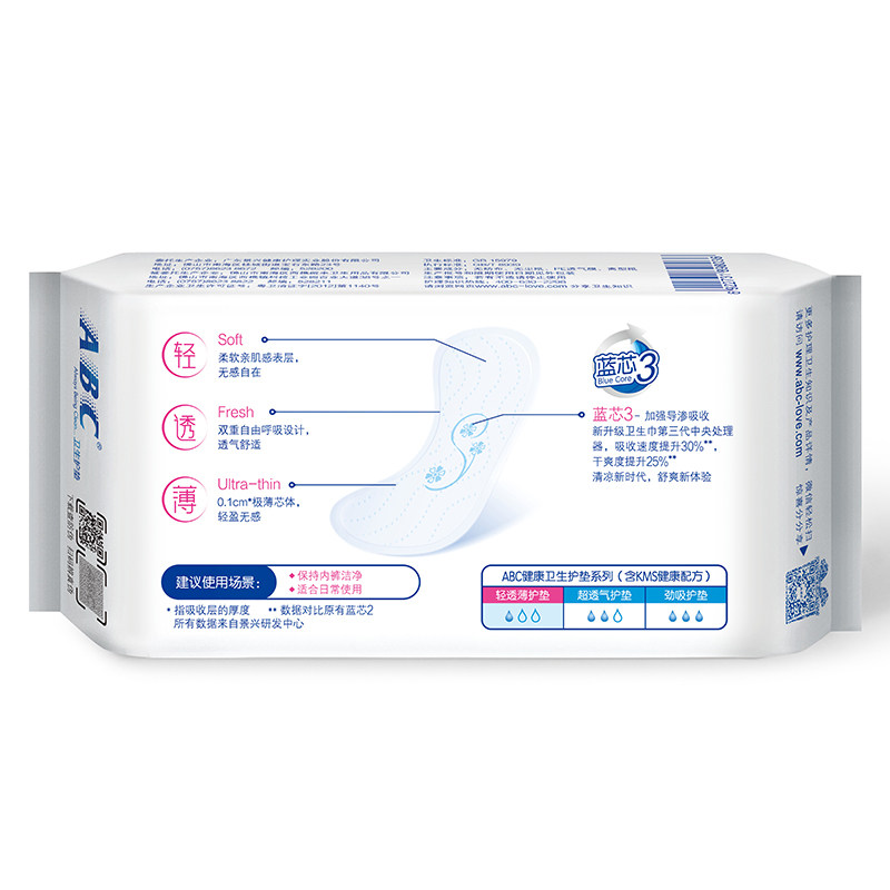 ABC невидимая ультратонкая хлопковая мягкая прокладка 163 мм обычные кусочки типа 22/упаковка