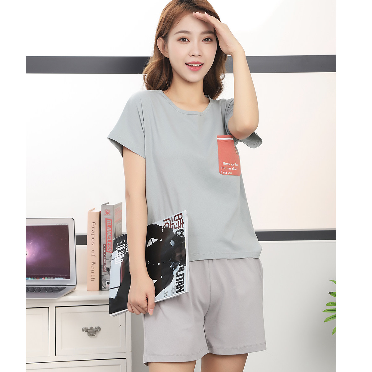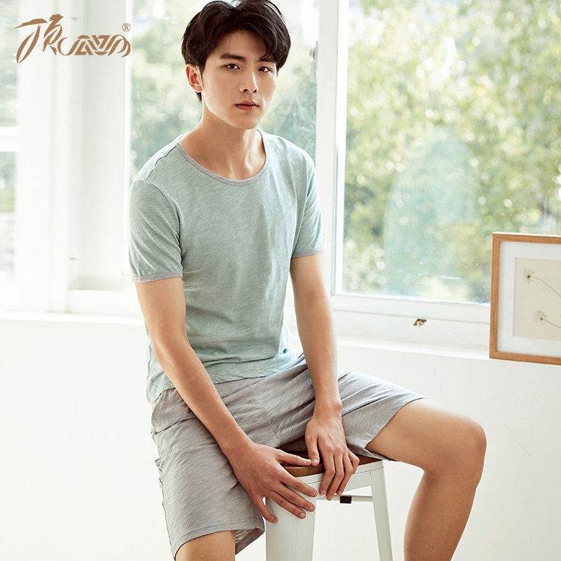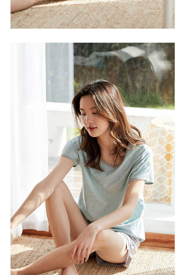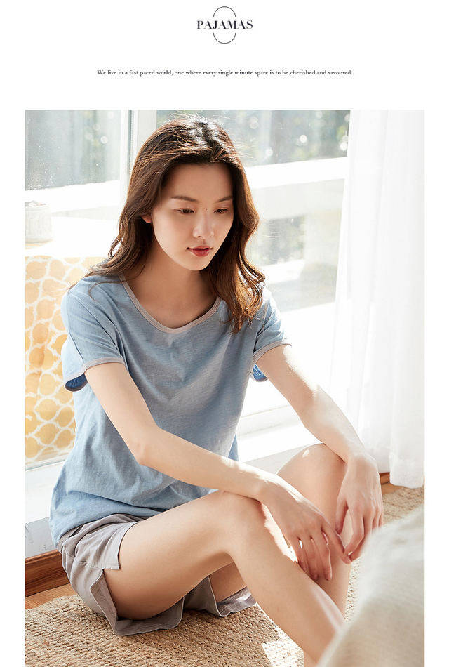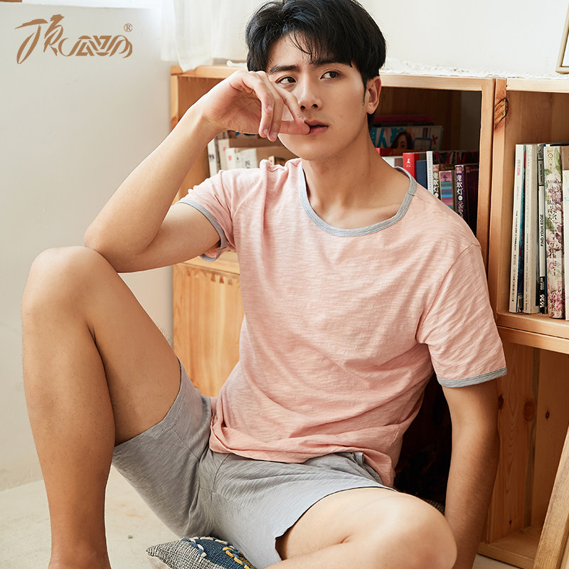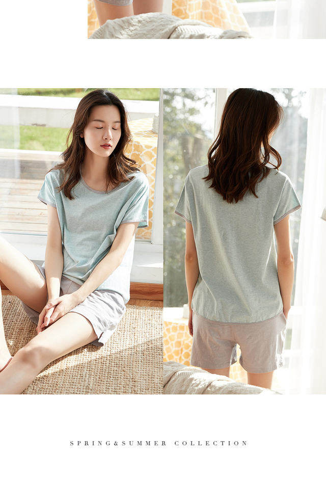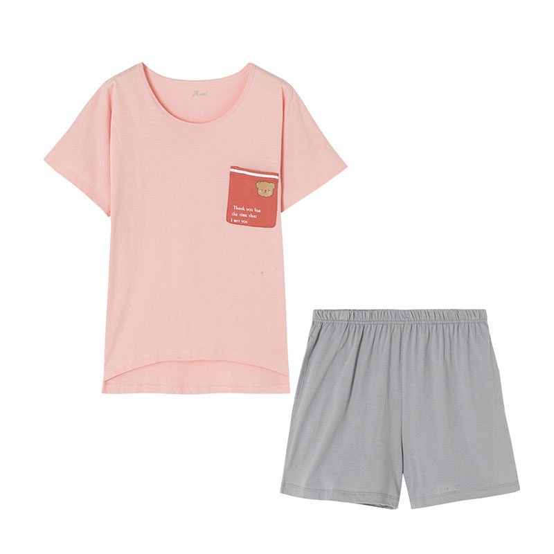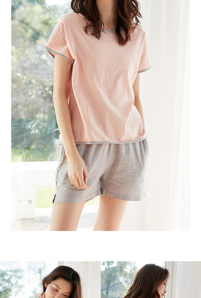 Хлопковая пижама, шорты, комплект с круглым воротником, короткий рукав, 2 шт