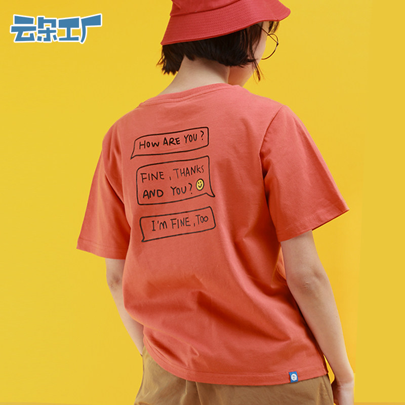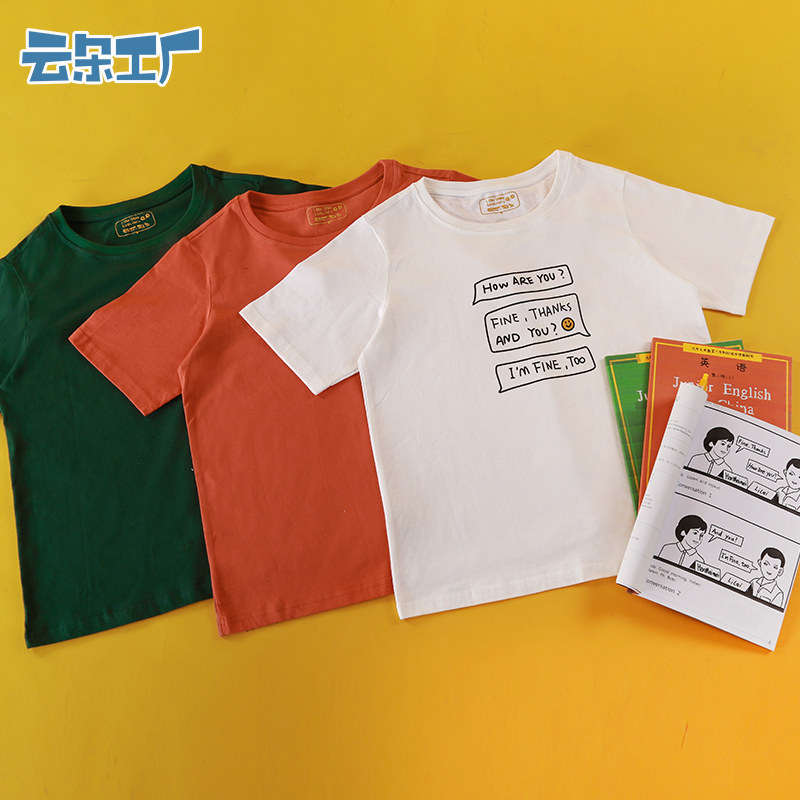 云朵工厂 Летняя футболка с коротким рукавом для школьников для отдыха с круглым воротником