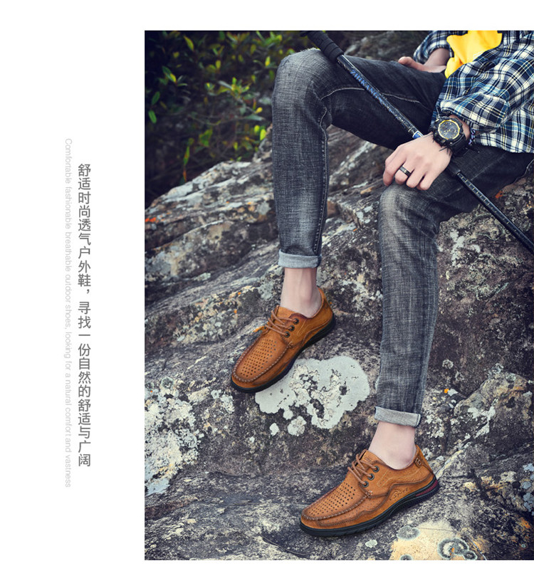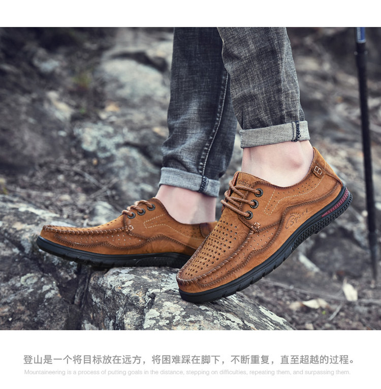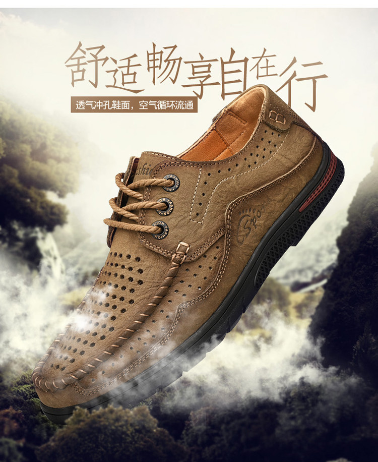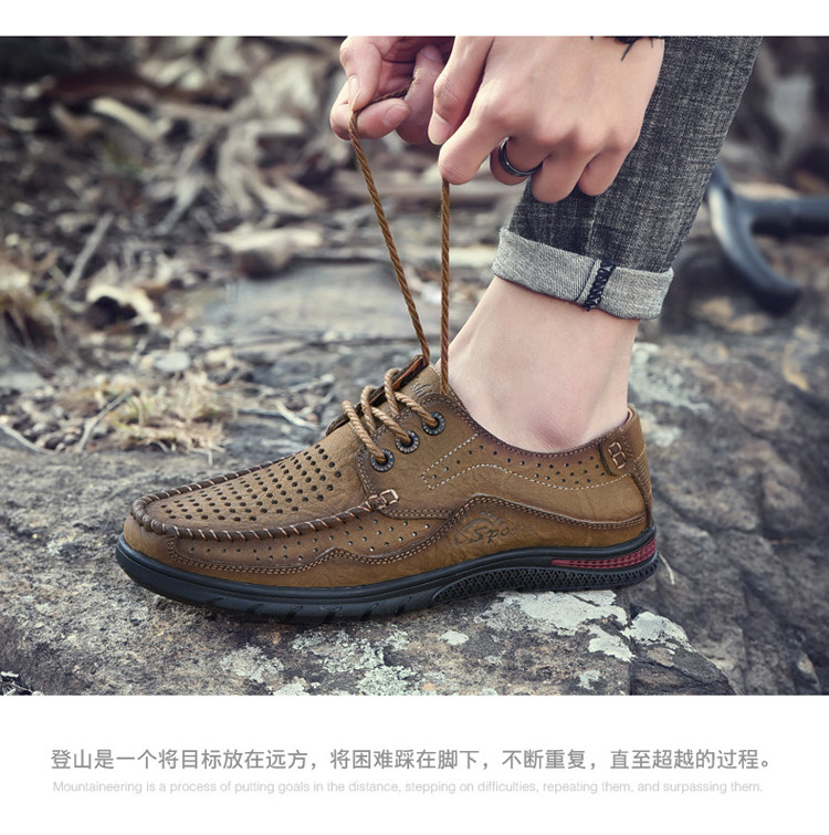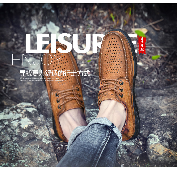 Huagang Camel Полая кожаная обувь Мужская натуральная кожа Летние дышащие легкие повседневные кожаные сандалии Мужские мужские туфли из крокодиловой кожи на мягкой подошве