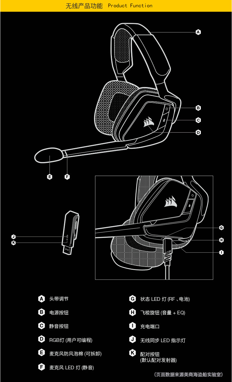 美商海盗船 VOIDRGB Skywalker V2 Bluetooth HS80 H55 наголовная беспроводная гарнитура 7.1-канальная