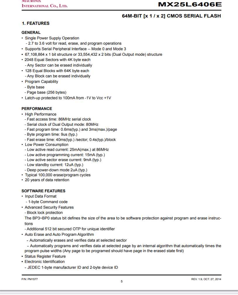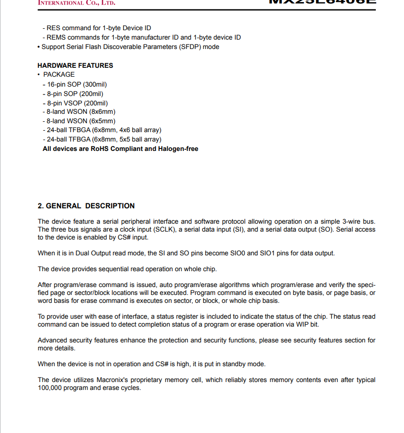 | Цвет: | MX25L8006EM2I-12G (8Mbit/1M), MX25L1606EM2I-12G (16Mbit/2M), MX25L3206EM2I-12G (32Mbit/4M), MX25L6406EM2I-12G (64Mbit/8M), MX25L12835FM2I-10G (128Mb/16M), MX25L25645GM2I-10G (256Mb/32M) |