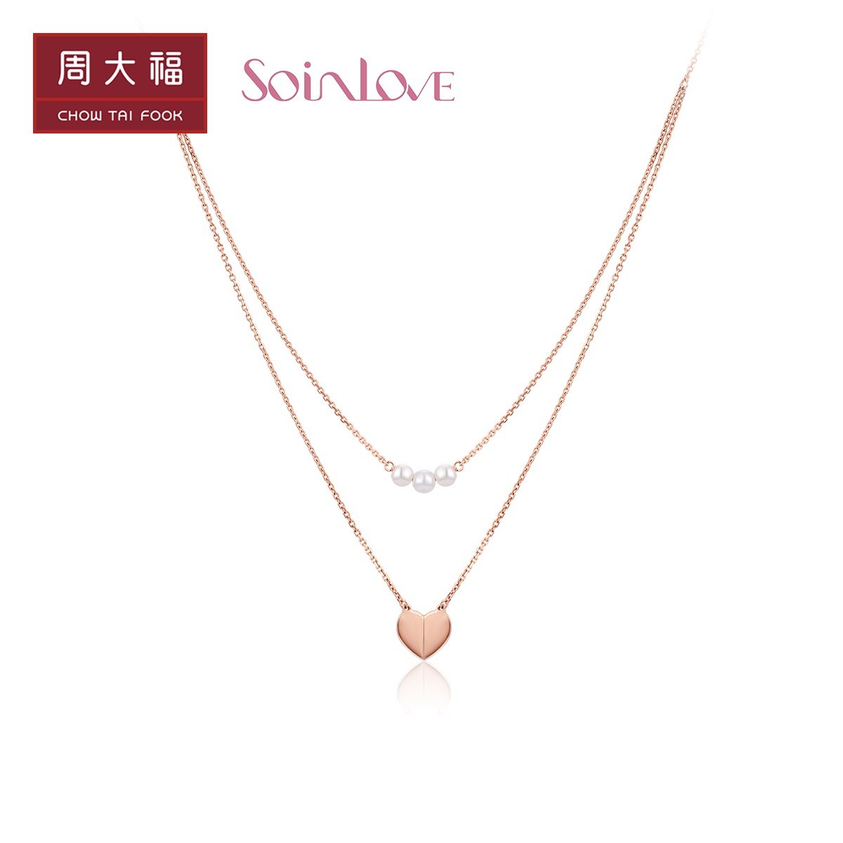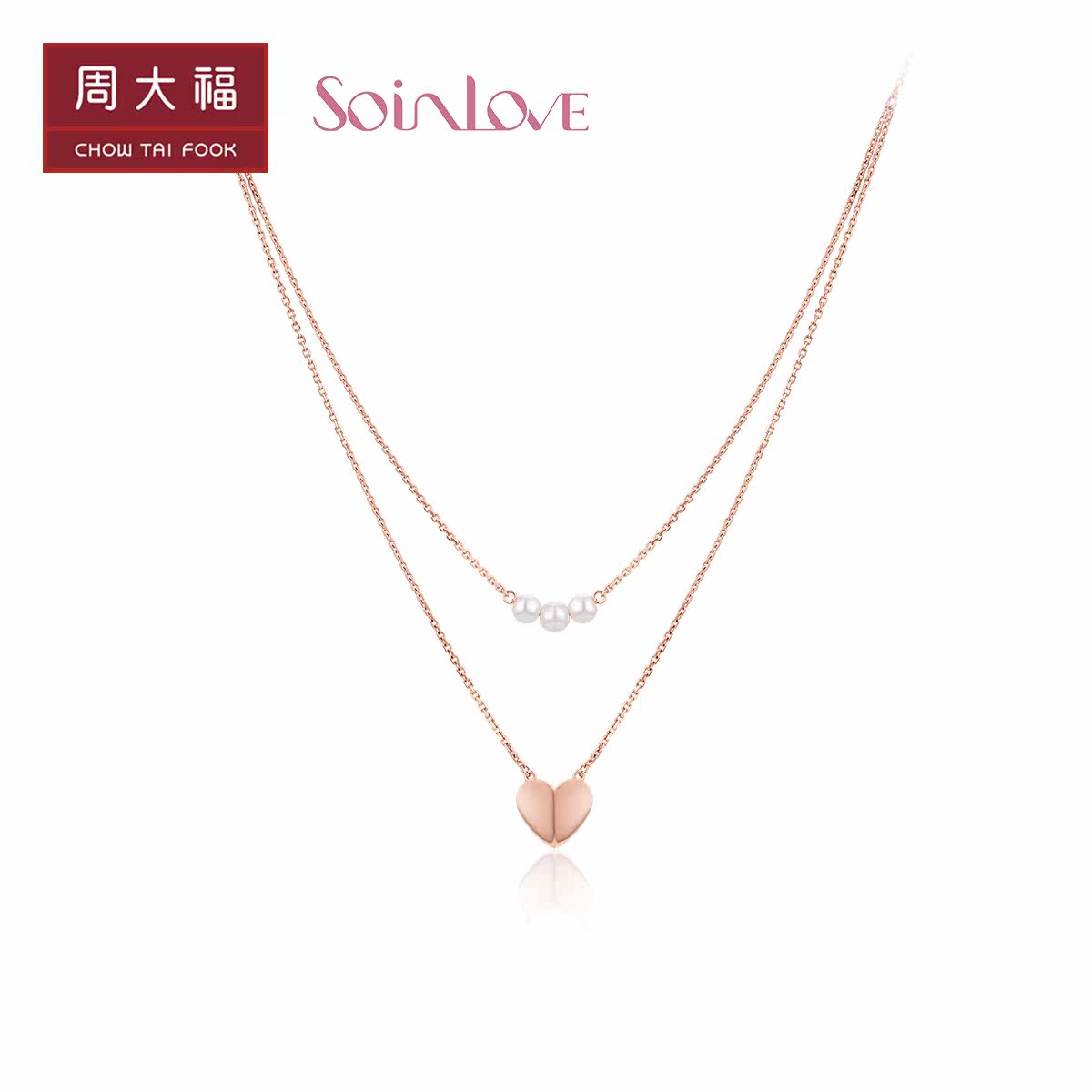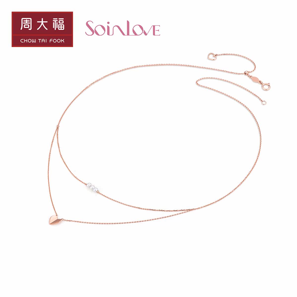 周大福 Ожерелье в форме сердца из жемчуга, цепочка, подвеска, золото 750 пробы