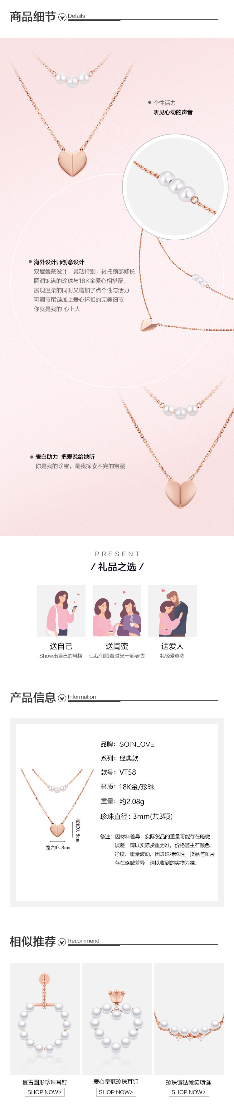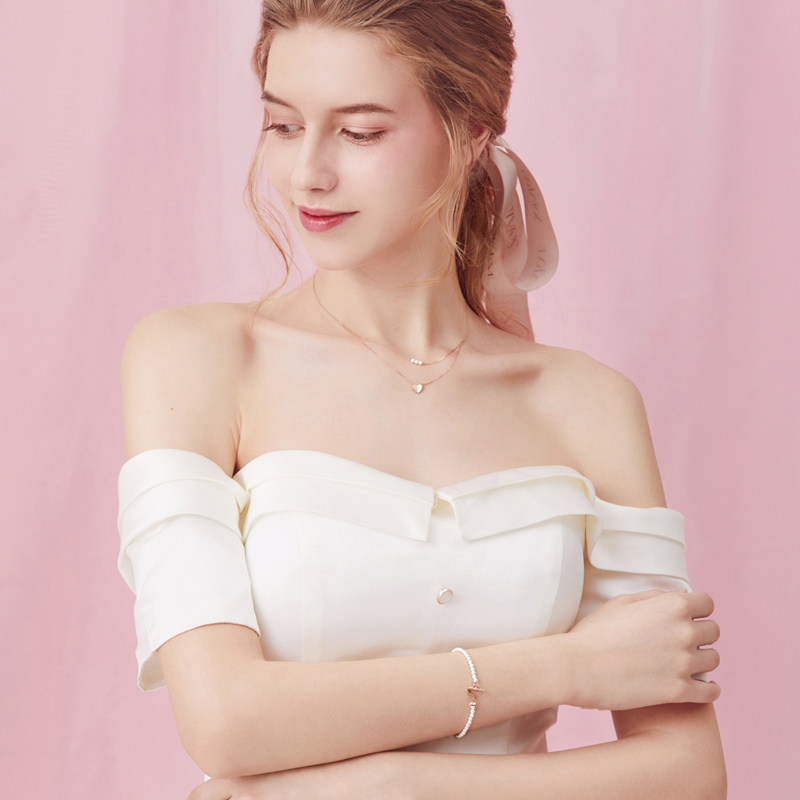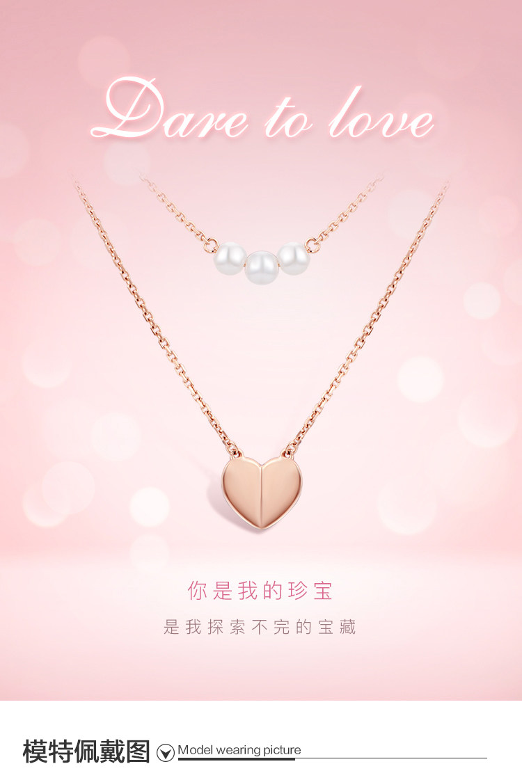周大福 Ожерелье в форме сердца из жемчуга, цепочка, подвеска, золото 750 пробы