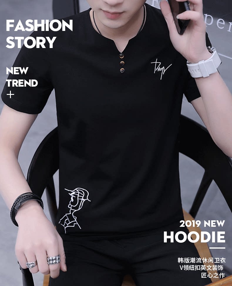 Мужская летняя трендовая универсальная футболка, сезон 2021, V-образный вырез, короткий рукав, в корейском стиле