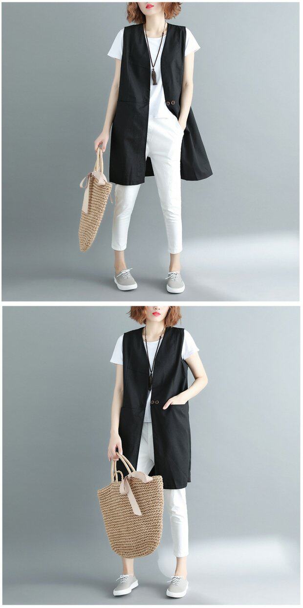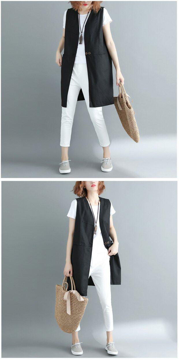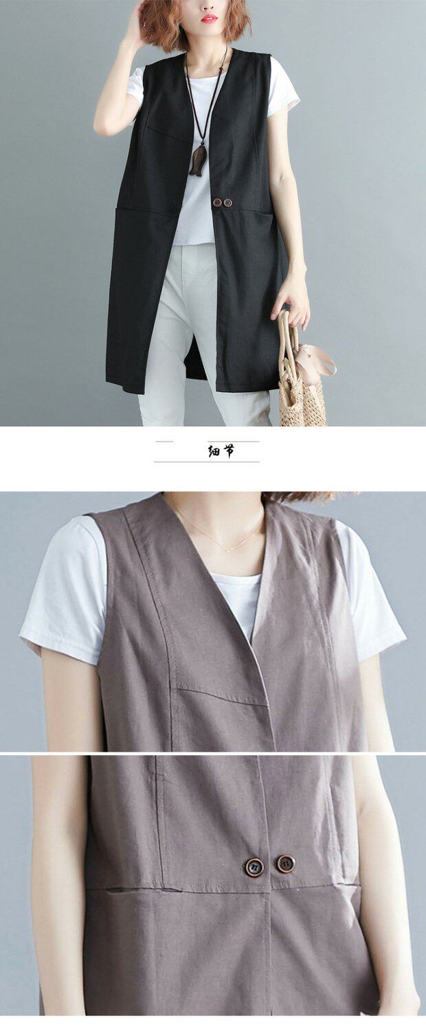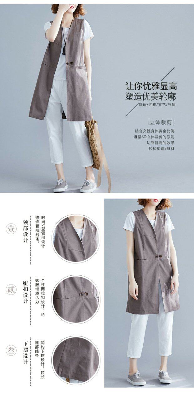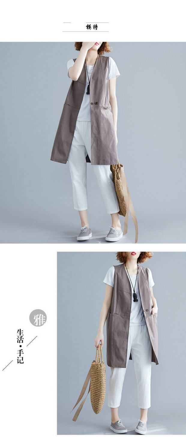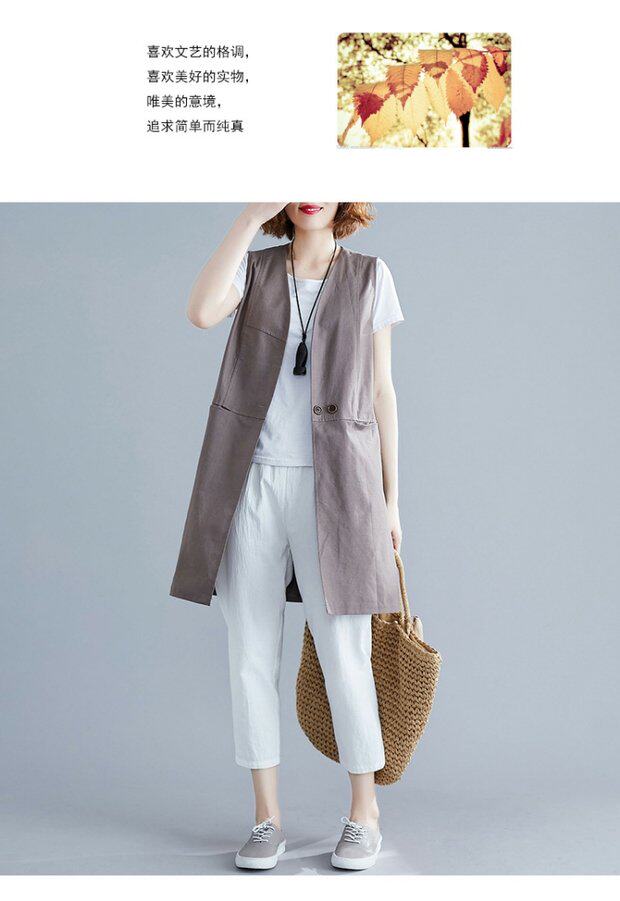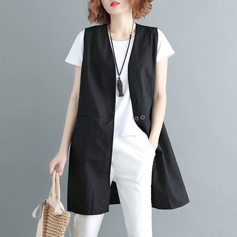 Летняя однотонная цветная длинная летняя одежда, кардиган без рукавов, из хлопка и льна, в западном стиле, V-образный вырез