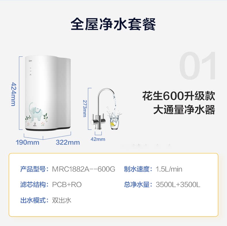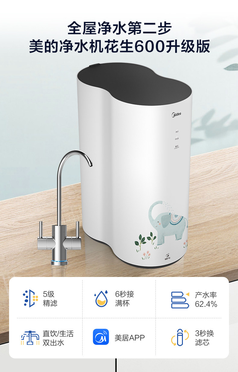 Мидю -арахисовый очиститель воды. Домохозяйство прямое фильтр для питьевой воды RO Обратный осмос Официальный флагман целого дома 600G