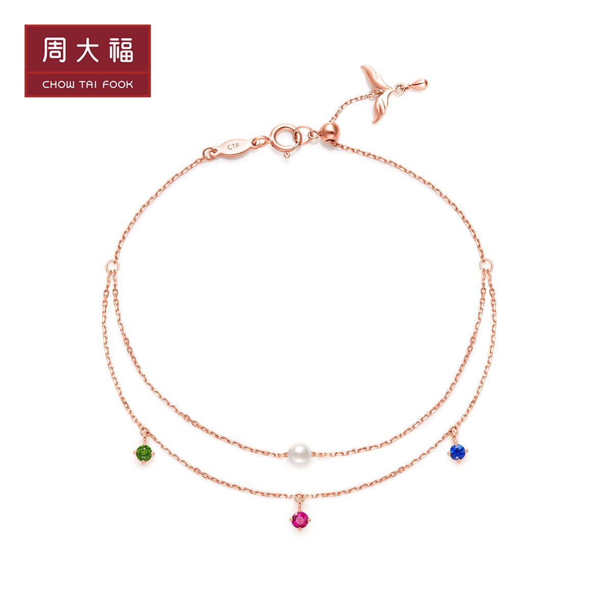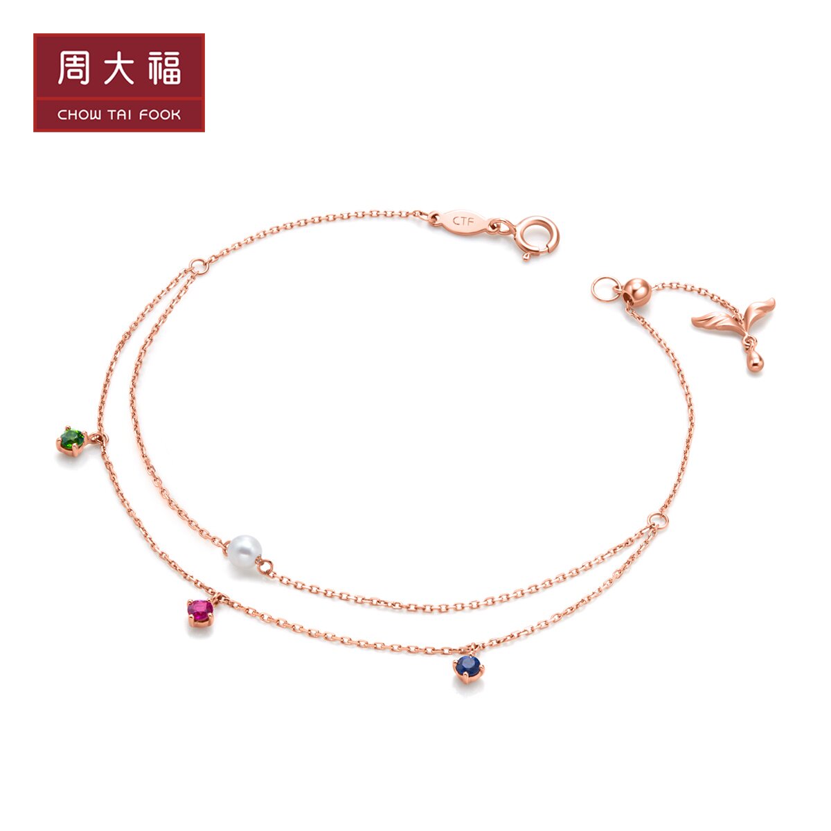 周大福 Браслет из жемчуга, приятный цвет, широкая цветовая палитра, золото 750 пробы, с драгоценным камнем