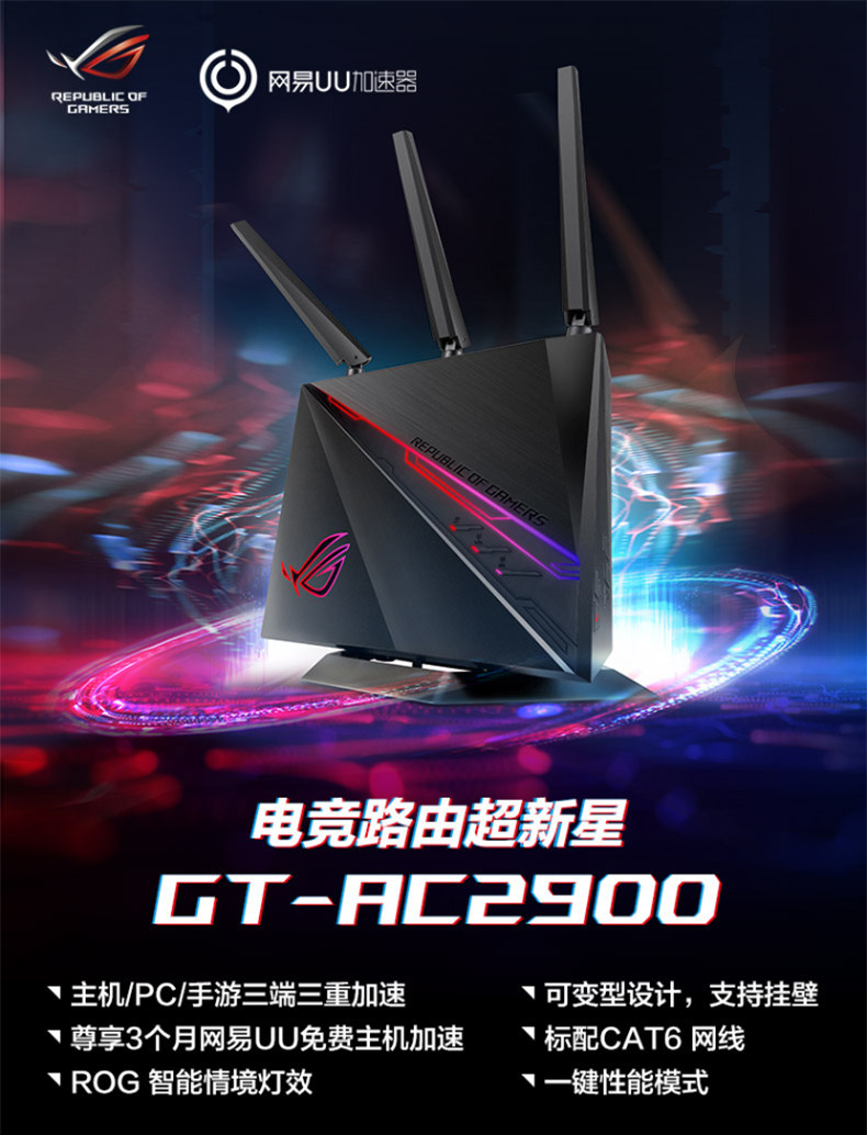 ASUS GT-AC2900 Game Router Оптическое волокно двойное беспроводное беспроводное гигабитное маршрутизатор AC2900M Home Wi-Fi Высокоскоростное 5G UU Ускорение PS4/Switch