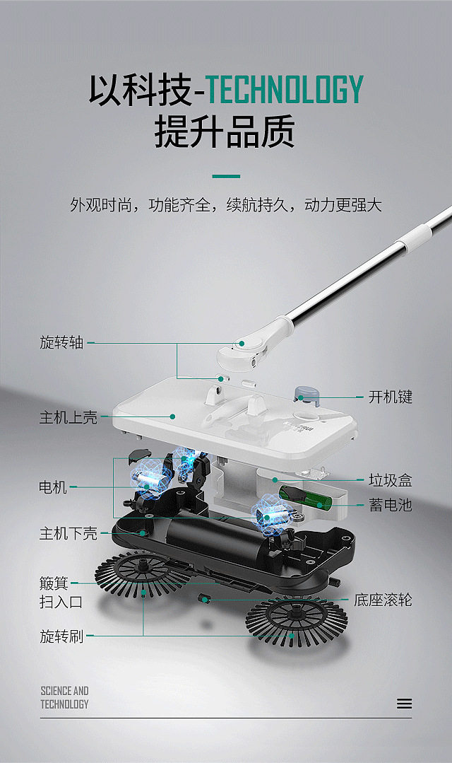 Беспроводная электрическая подметальная установка Автоматическая интеллектуальная ультра -тонкая вакуумная очиститель рука нажимает электрический и мопный