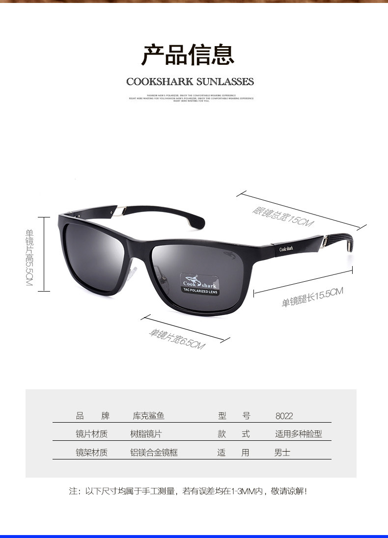 Cookshark Cook Shark Polarized Мужчины мужчина -водитель зеркал новые солнцезащитные очки мужской прилив приводные очки
