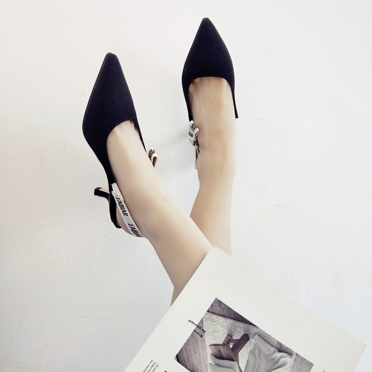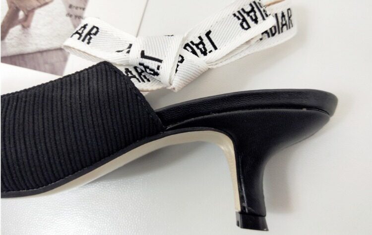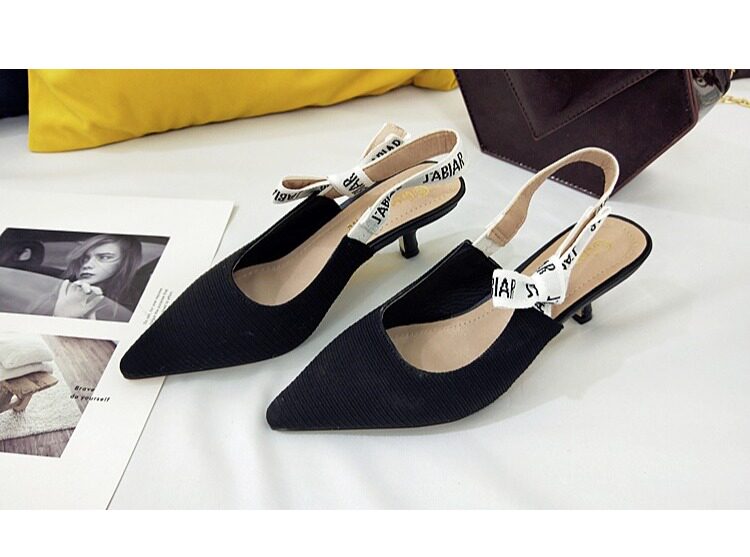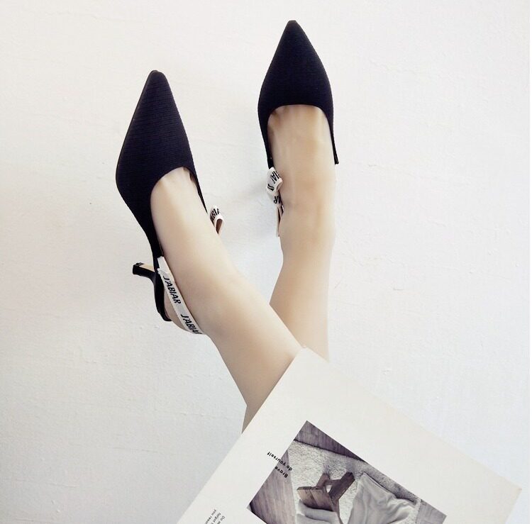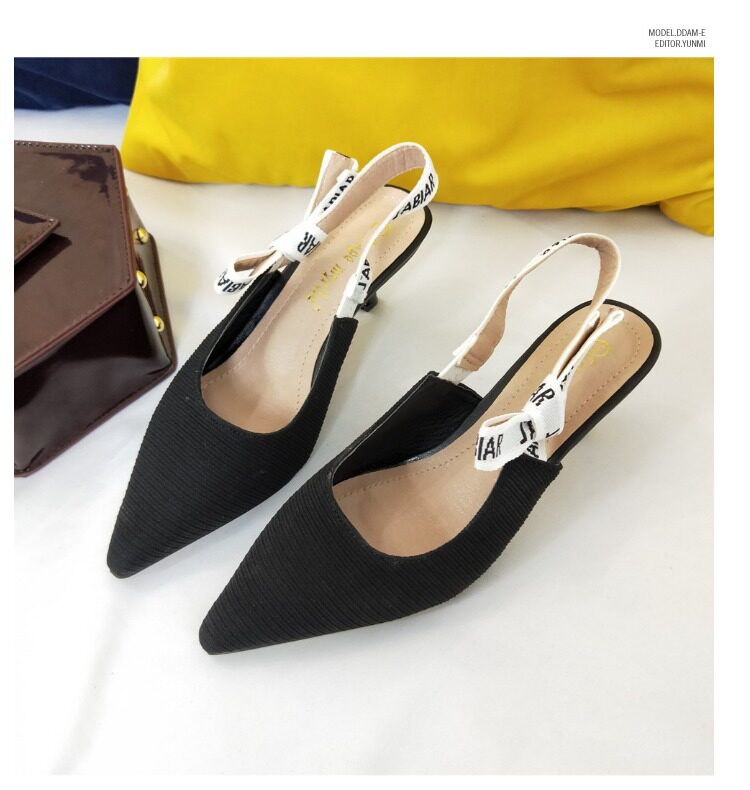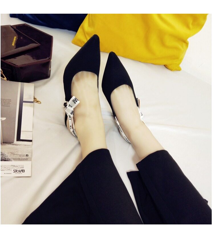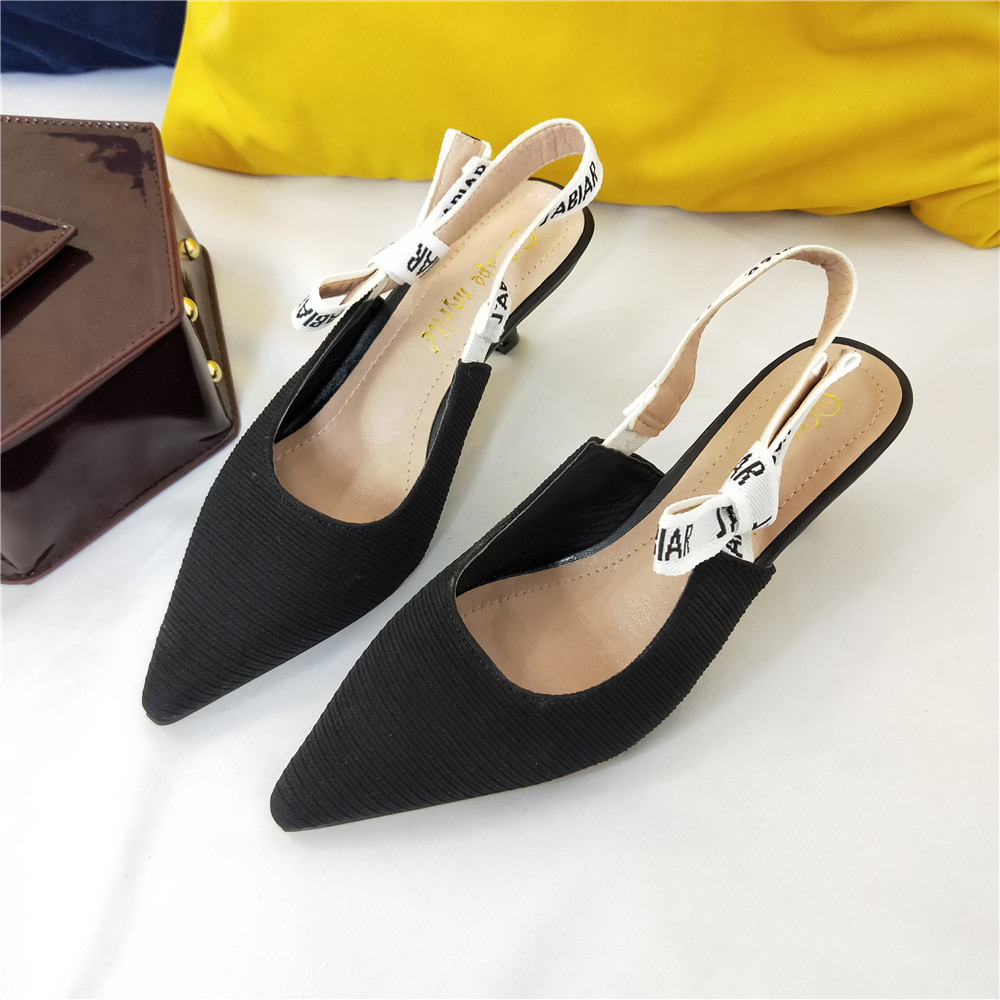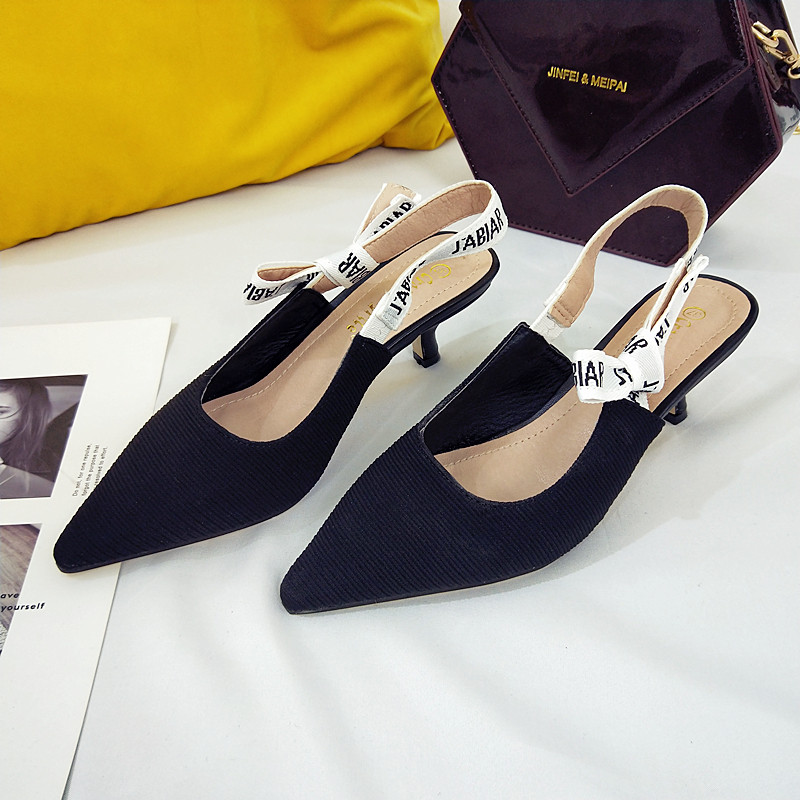 Туфли на кошачьем каблуке, новинка 2024 года, весна и лето, интернет-знаменитости, босоножки на шпильке с буквами и бантом на ленте, женские туфли на высоком каблуке с острым носком и неглубоким ртом