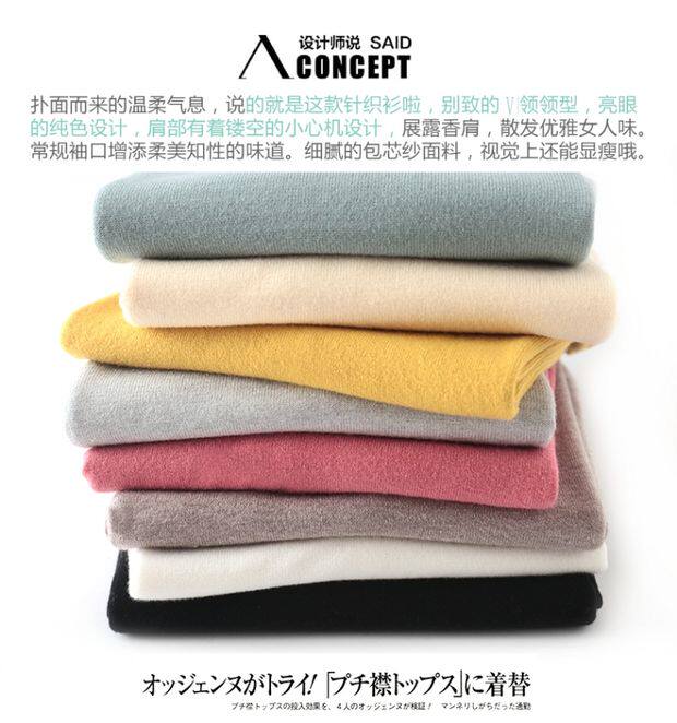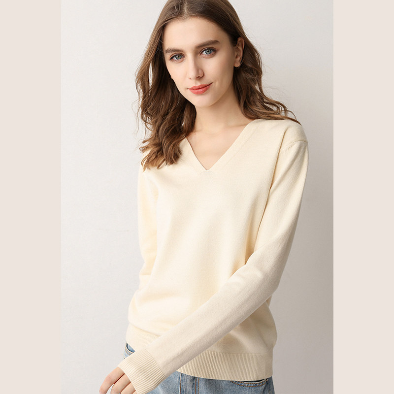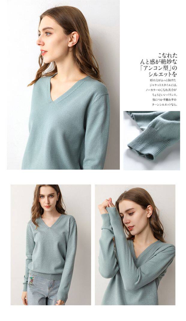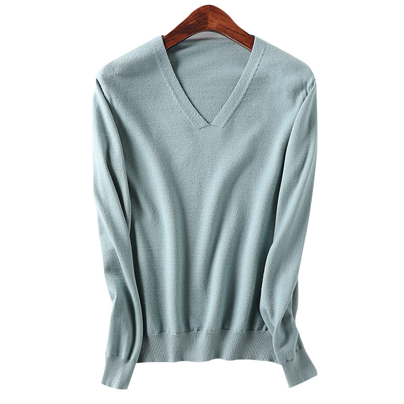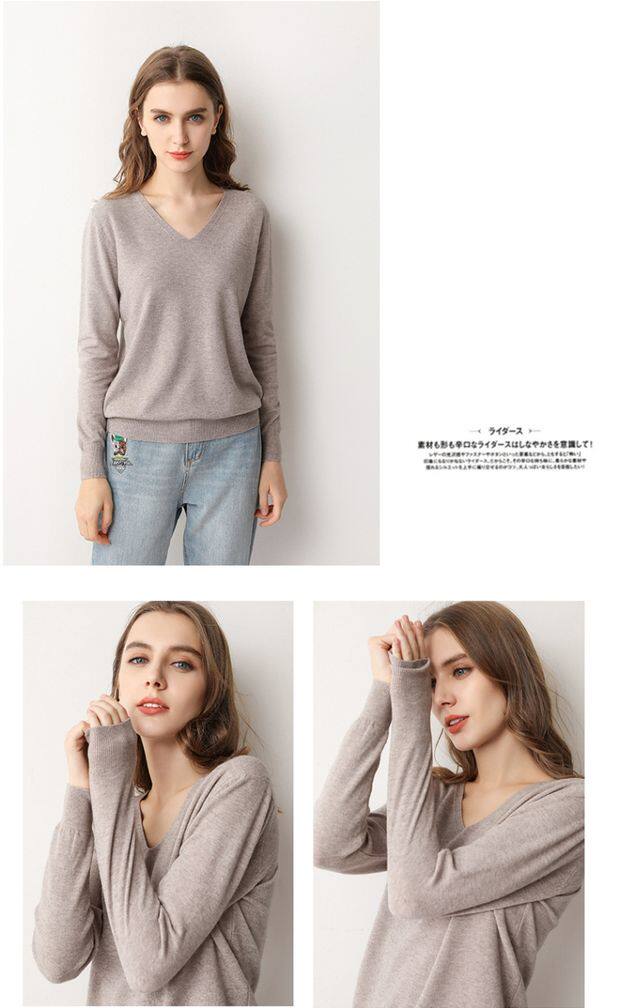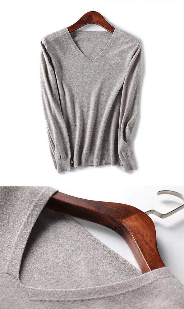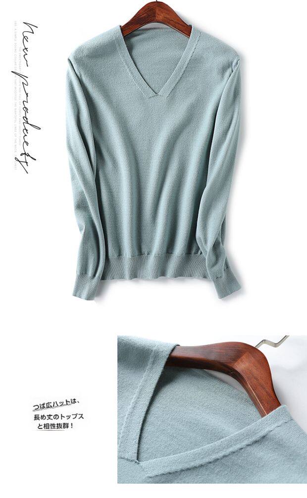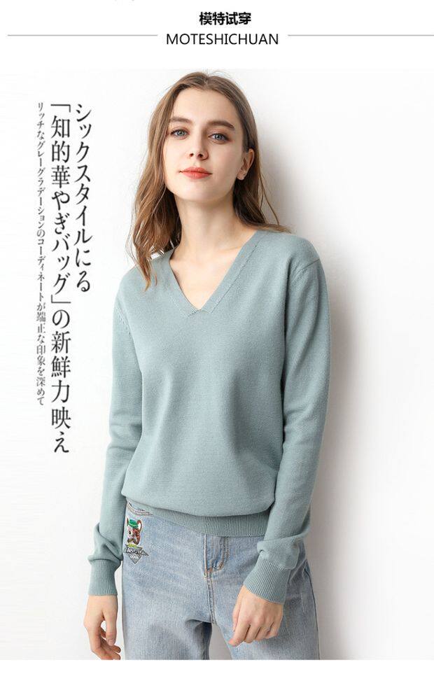 Демисезонный шерстяной тонкий трикотажный свитер, V-образный вырез, свободный крой, большой размер