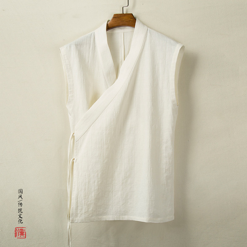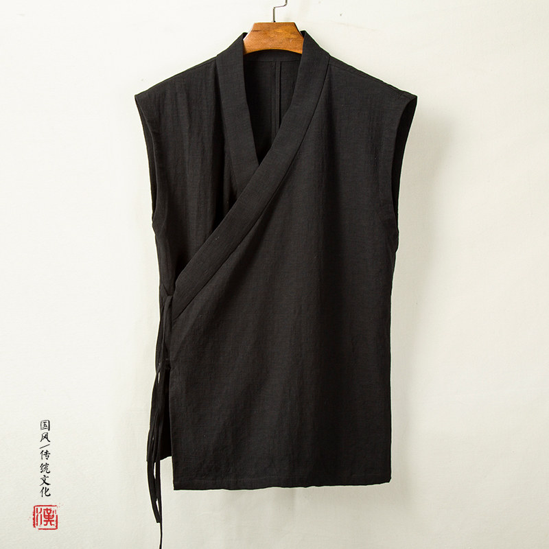 Жилет, ханьфу без рукавов, китайский стиль, из хлопка и льна