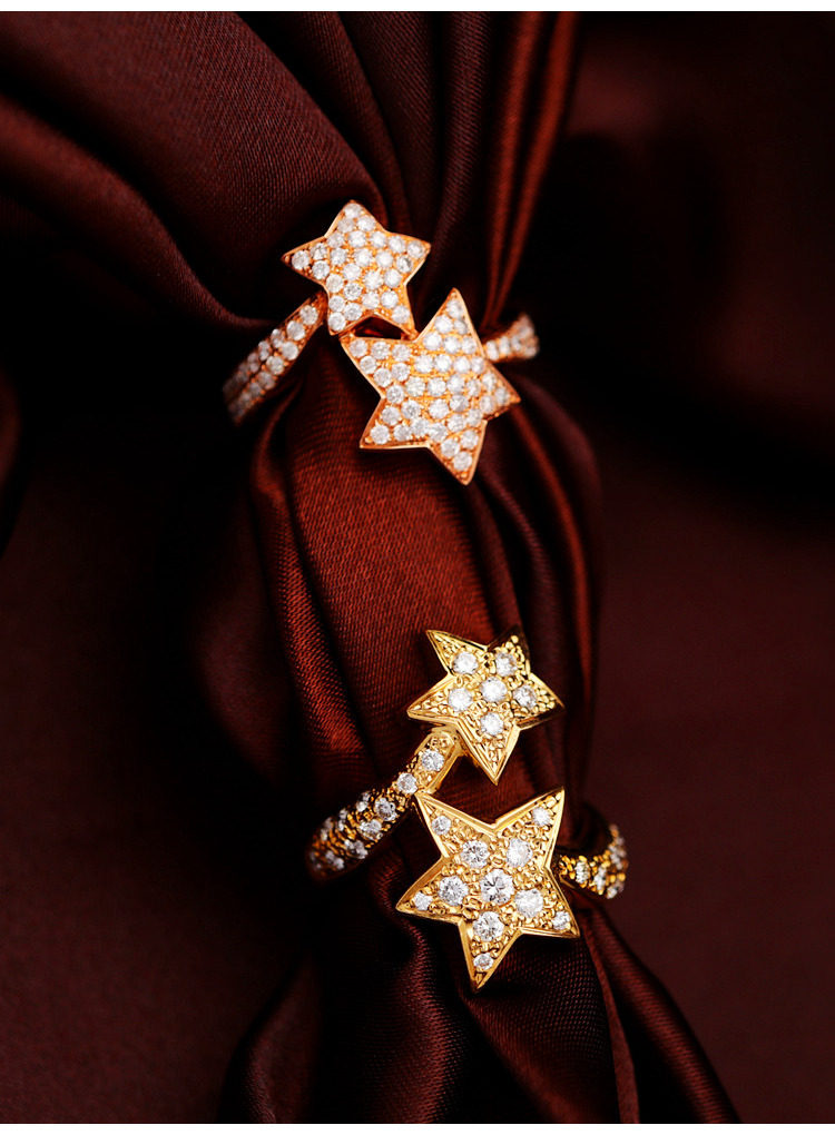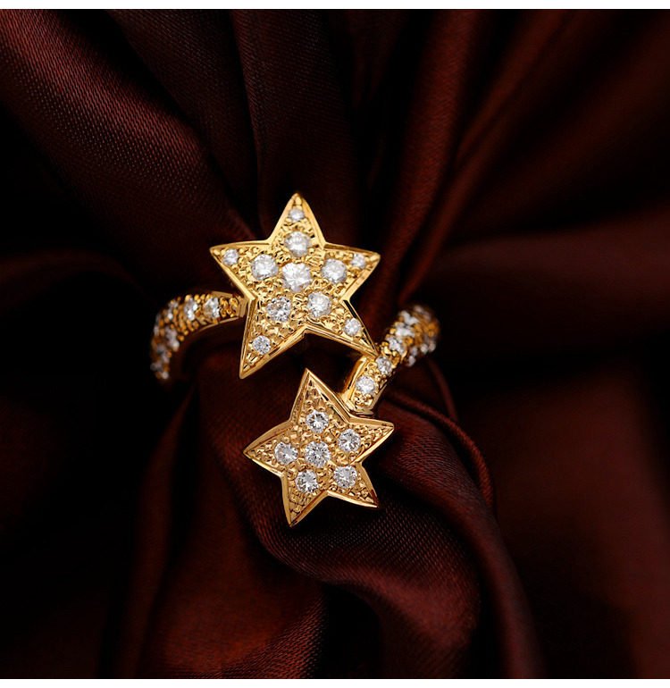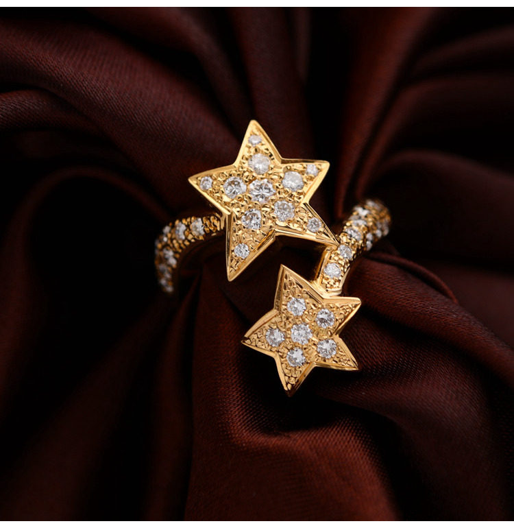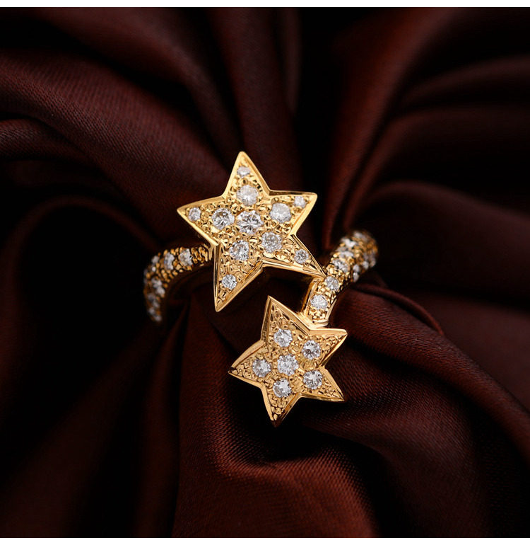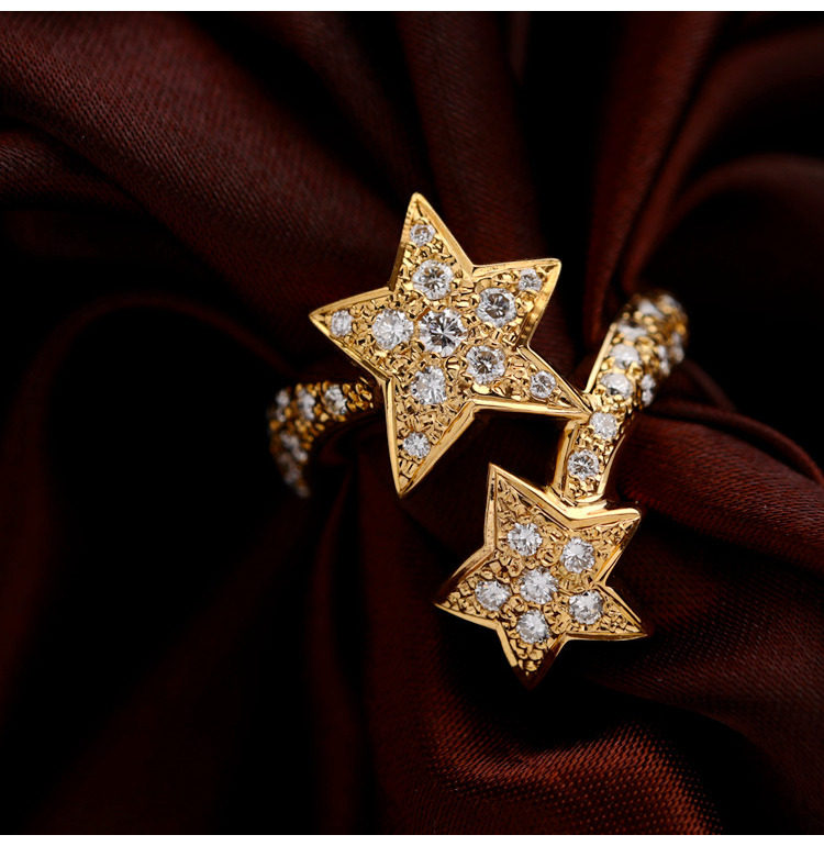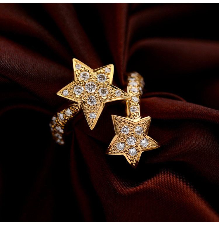 18K золотые бриллианты, инкрустированные звездами Кольцо [Настоящие родственные души всегда найдут друг друга]
