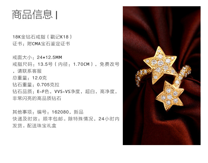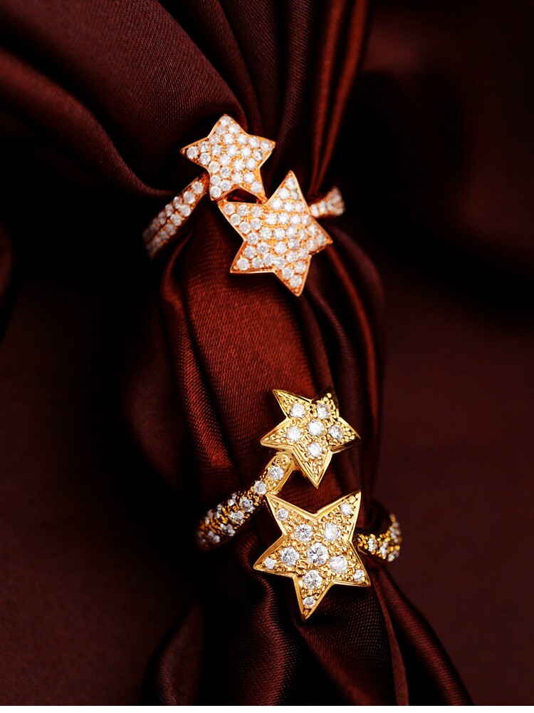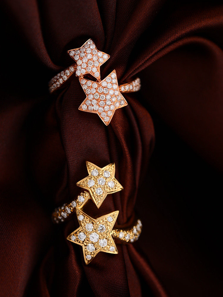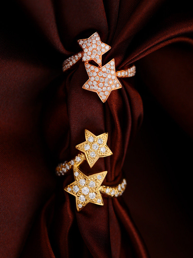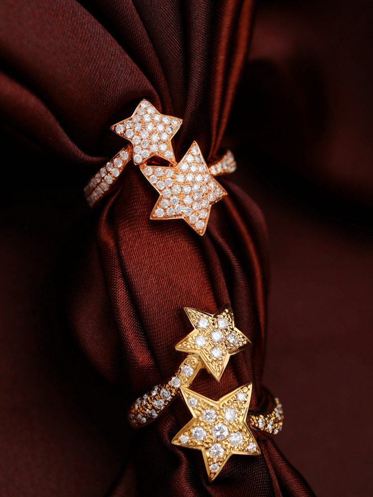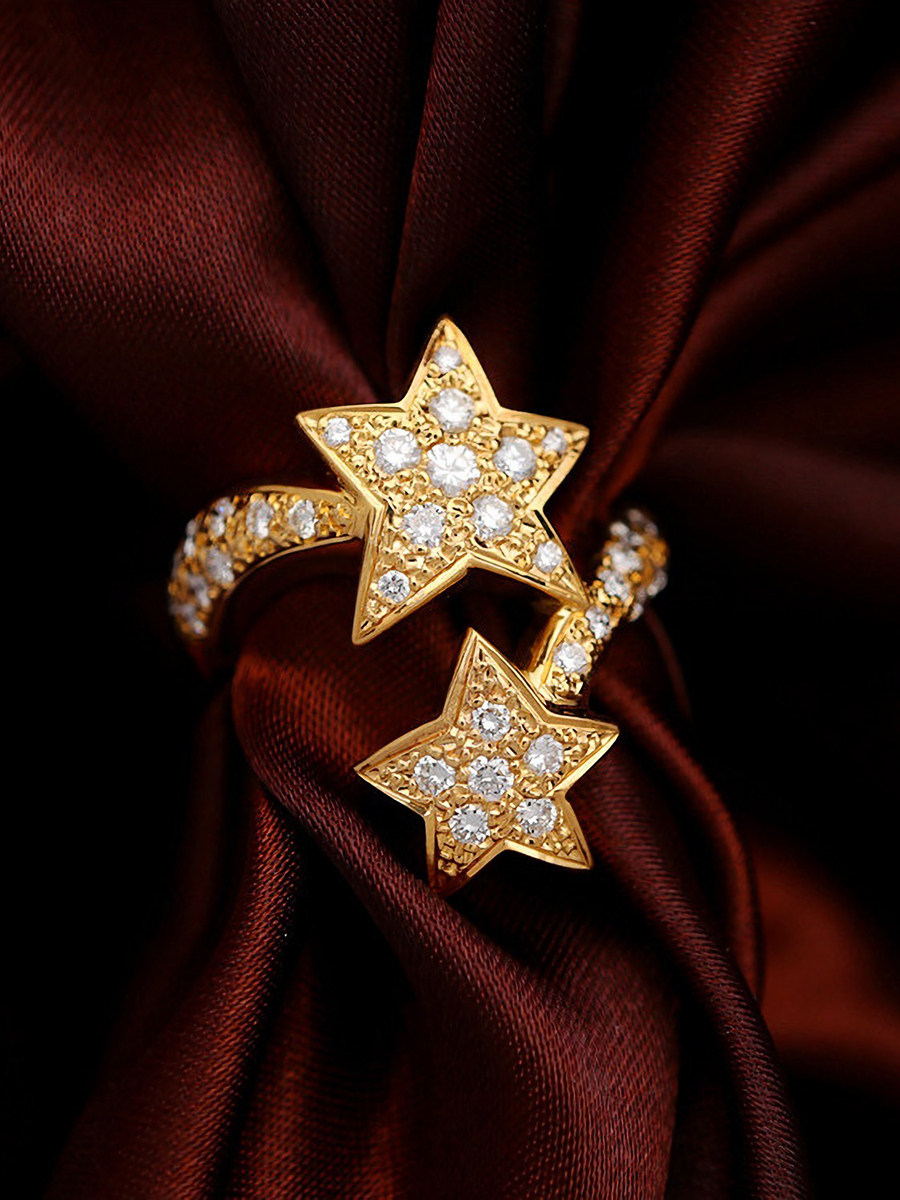 18K золотые бриллианты, инкрустированные звездами Кольцо [Настоящие родственные души всегда найдут друг друга]