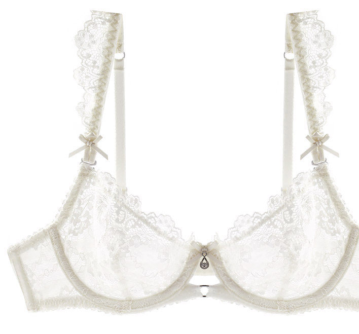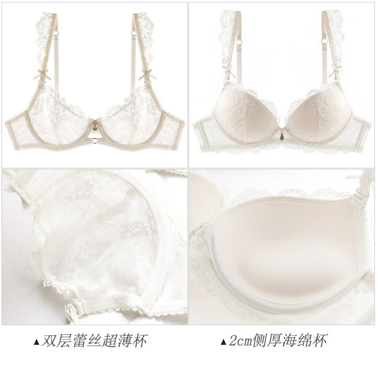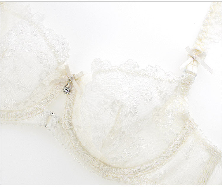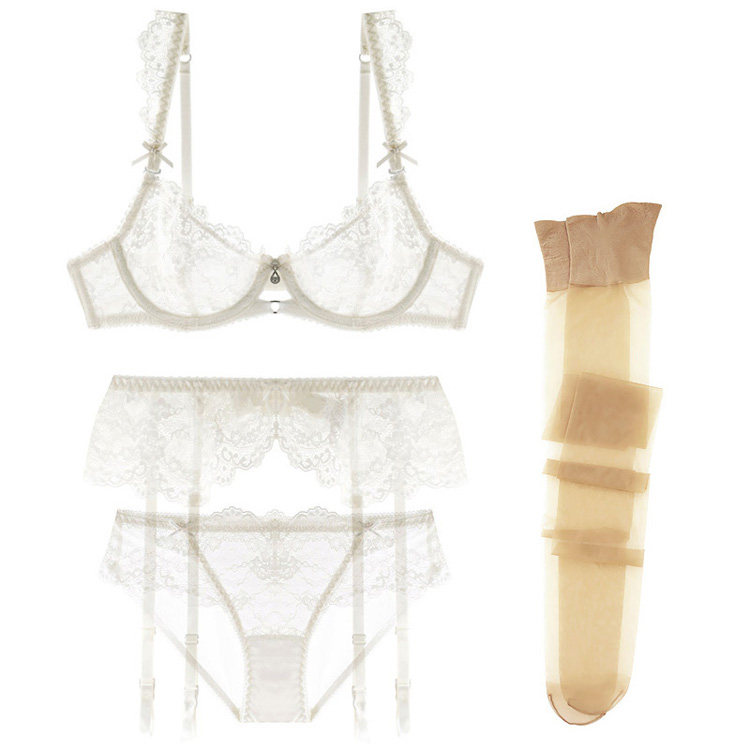 Сексуальный белый кружевной прозрачный ультратонкий поддерживающий поролоновый бюстгалтер, комплект, легкий роскошный стиль, цвет слоновой кости, 4 шт
