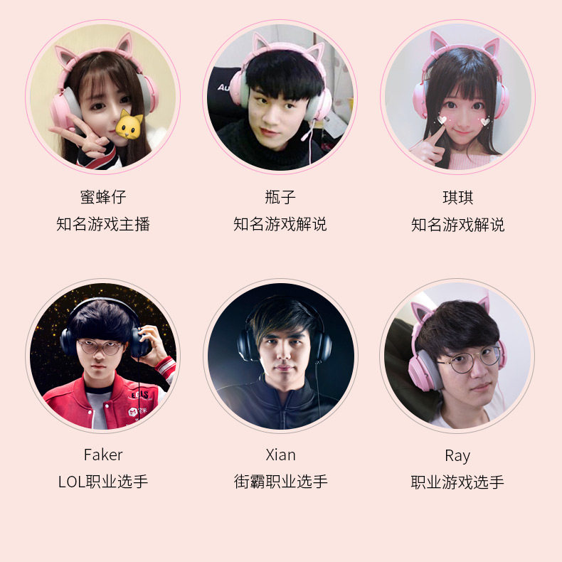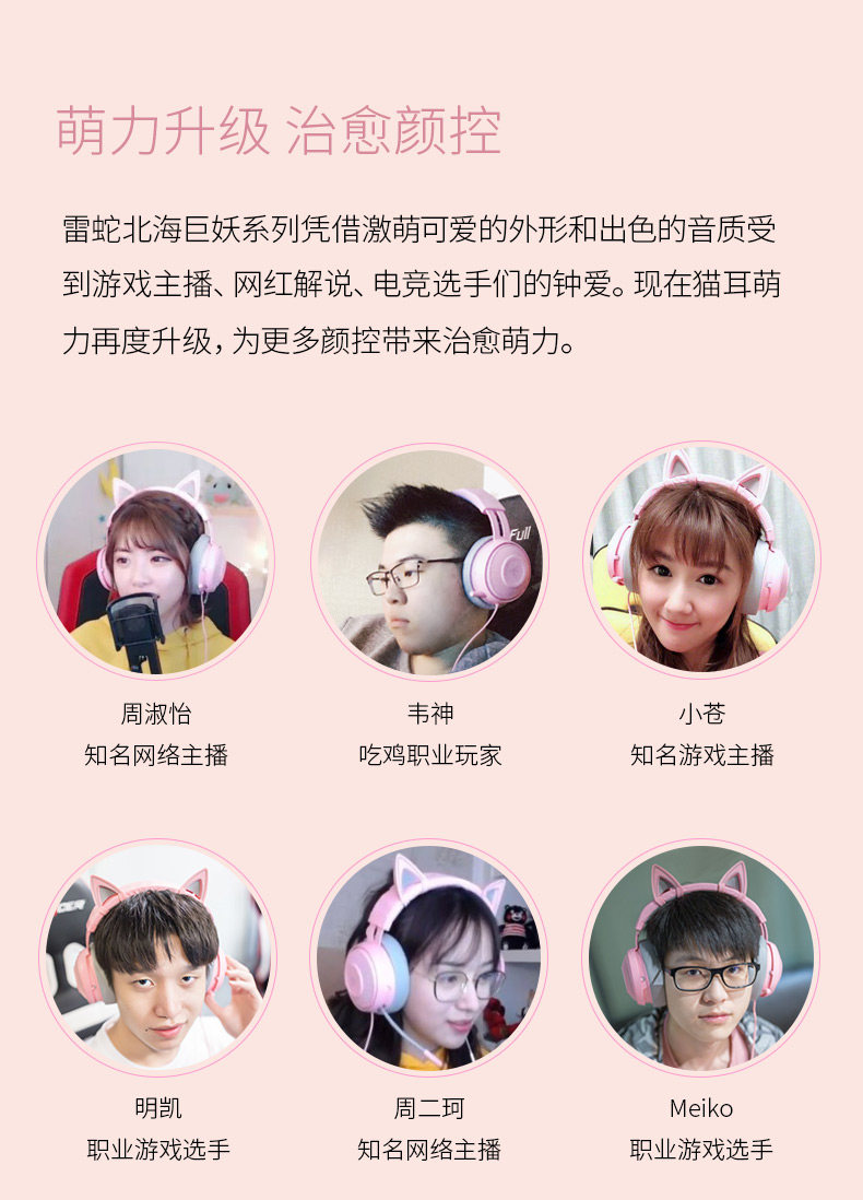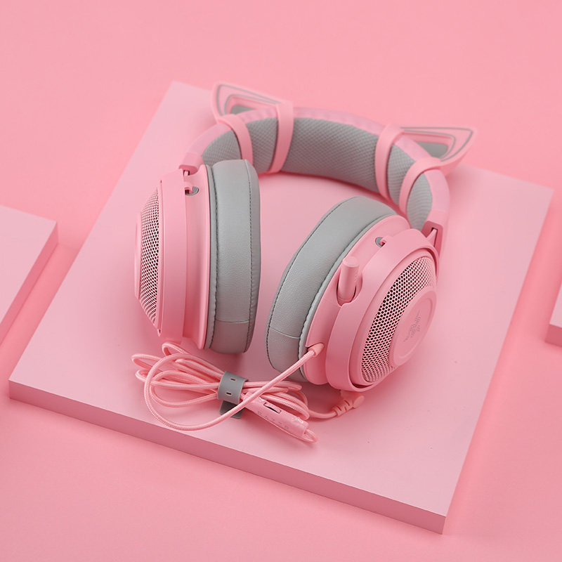 Razer Razer Beihai Giant Monster Wear 7.1 окружающие каналы Game Наушники розовые уши кошек Ешь