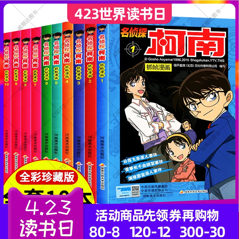 Знаменитый детектив Конан Комикс книга Полный набор подлинных 10 томов цветов японского мультфильма аниме Daquan для детей лучшей внеклассной книги, подходит для учащихся начальных школ комиксов, которые читают в первом и втором классах.