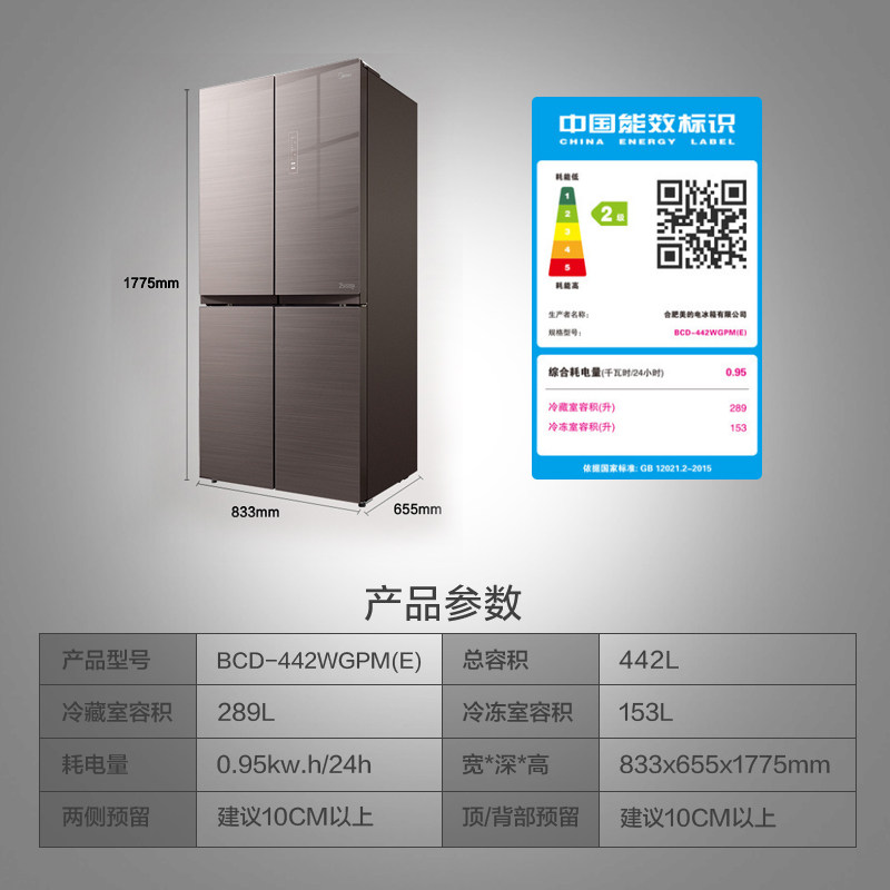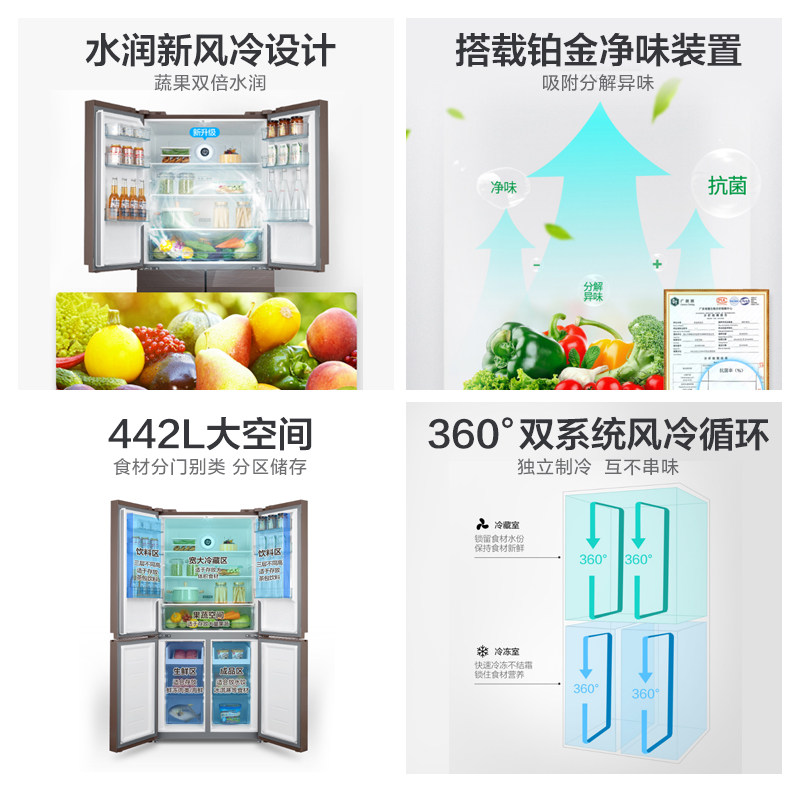 Midea/美的 BCD-442WGPM (e) Крупновая холодильника без холодильника четырехдверная домохозяйственная конверсия по домохозяйствам