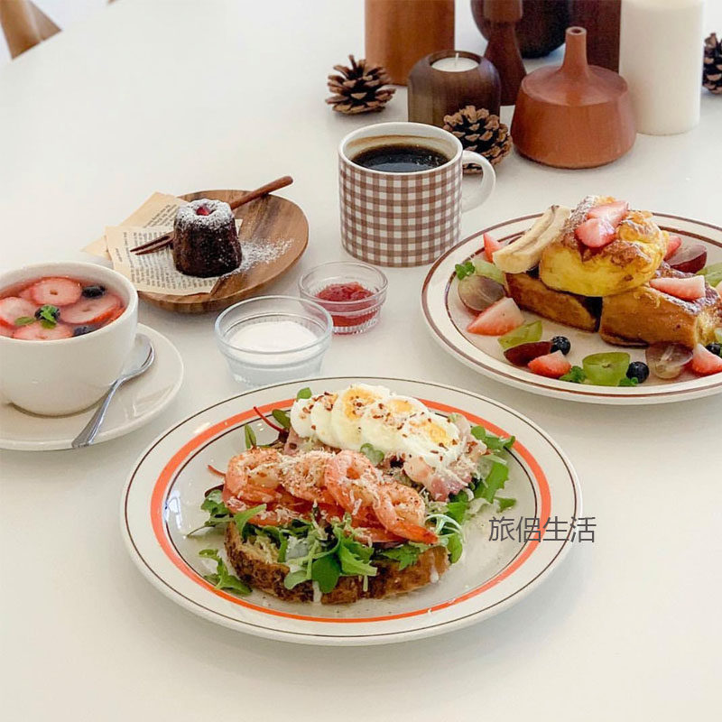 Шикарная ханфенг апельсиновая ретро -линия керамическая свидания на завтрак десерт Srassing Salad Ponet ins То же самое