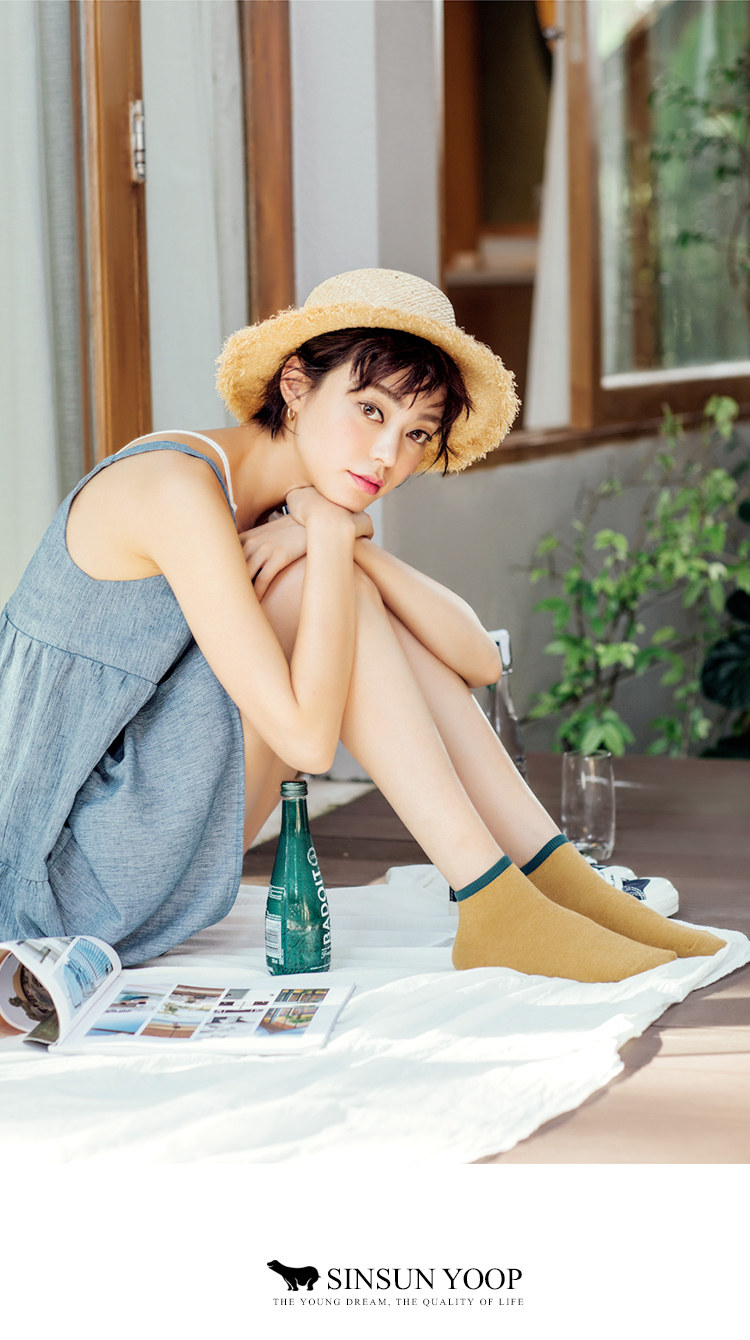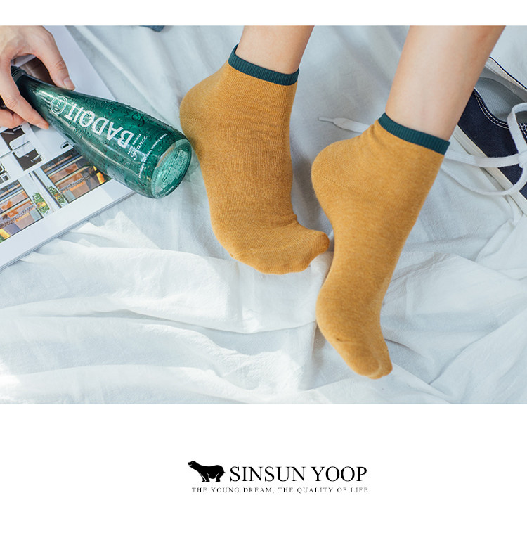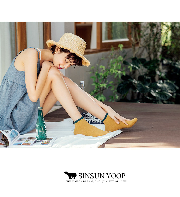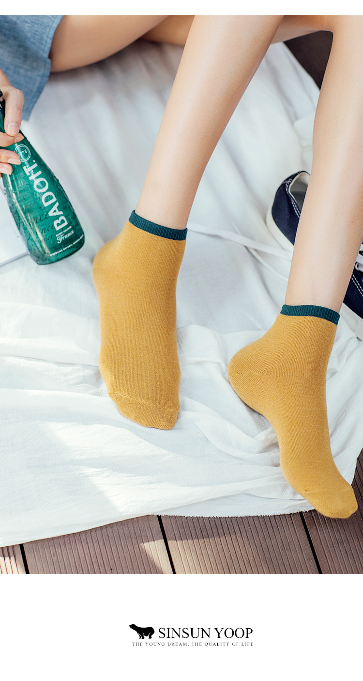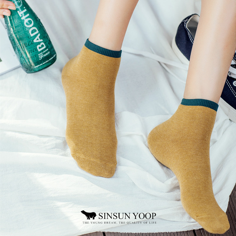 Весна и летняя японские хлопковые носки, цветные носки лодыжки, ретро -горчица, носки с желтой леди.