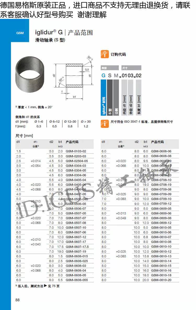 IGUS IGUS Engineering Plastic Self-смазывание подшипника GSM-3034-25/30/35/40 Прямая трубка Тип