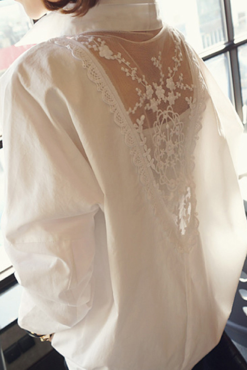 Белая шифоновая весенняя рубашка, в корейском стиле, оверсайз, большой размер, V-образный вырез